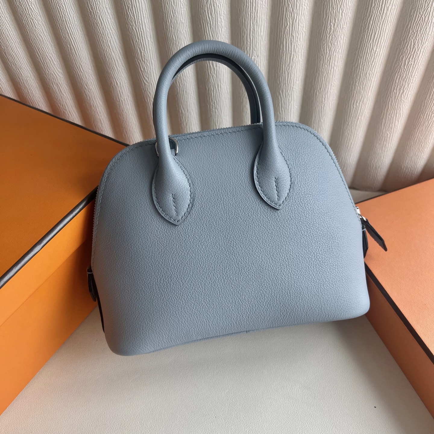 愛馬仕歐洲官網入口 Hermès MiniBolide 20cm Evercolor J7 blue lin 亞麻藍 銀扣