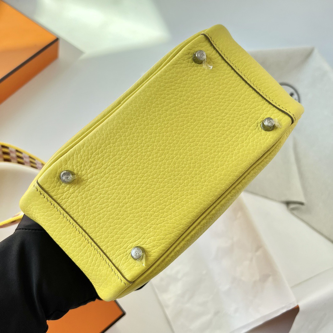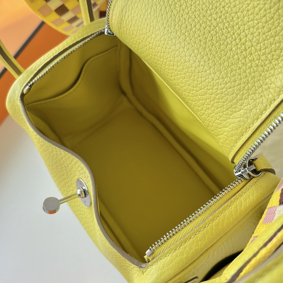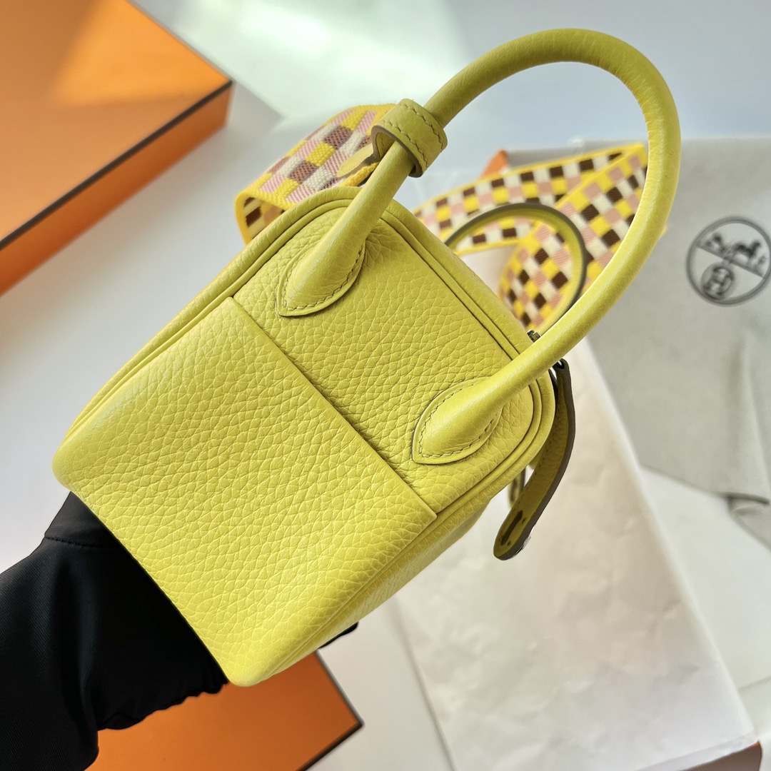 Kuwait Hermès MiniLindy 19cm Clemence 9R Lime Gold 檸檬黃 編製肩帶 銀扣
