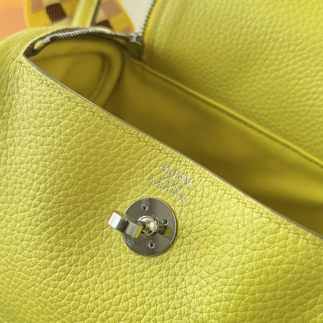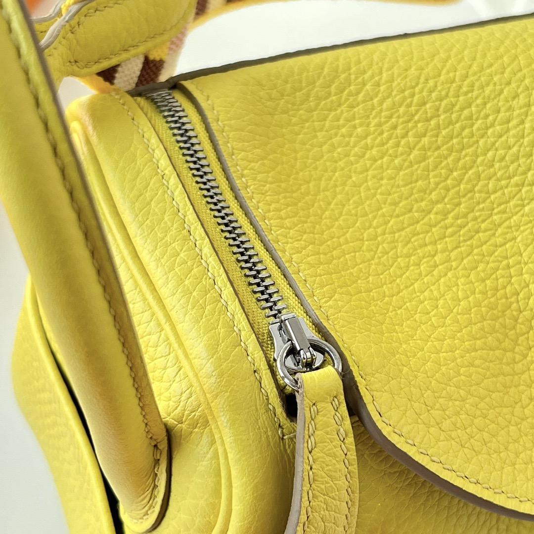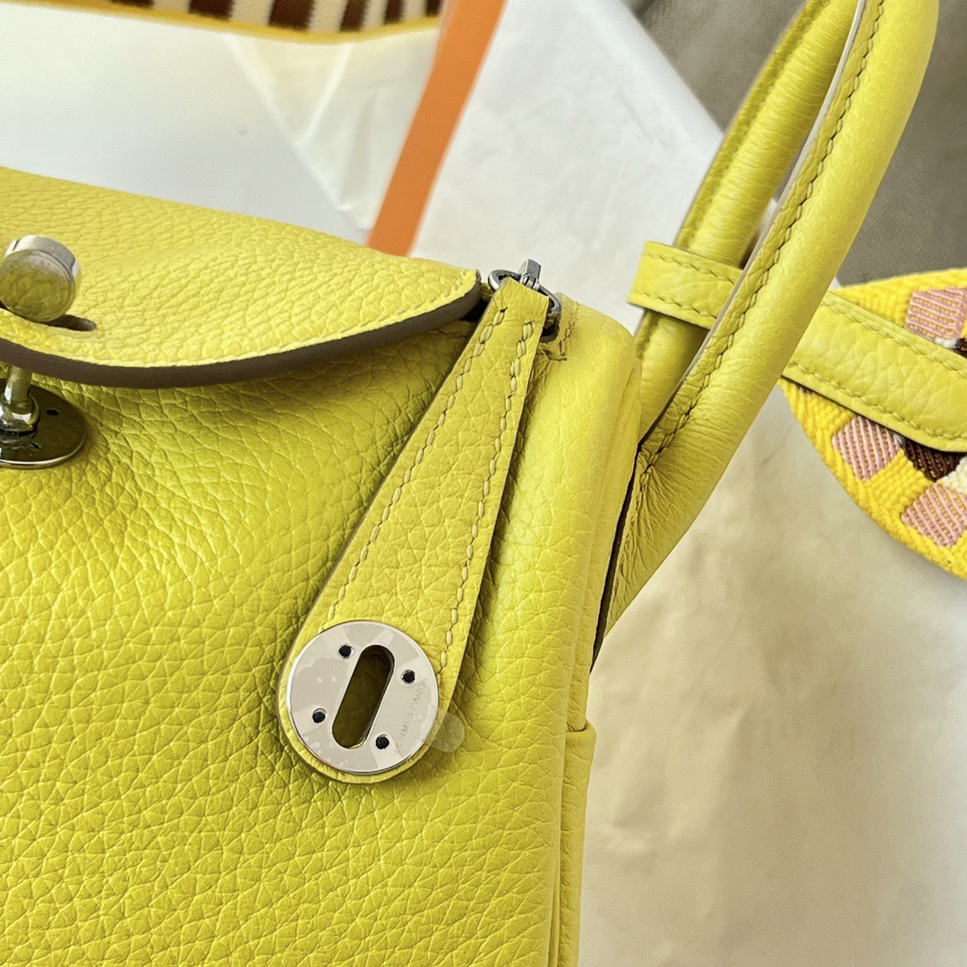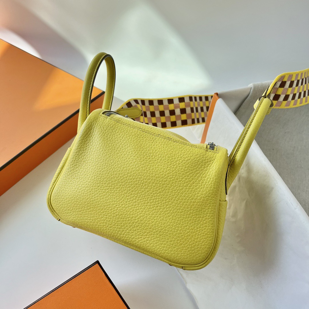 Kuwait Hermès MiniLindy 19cm Clemence 9R Lime Gold 檸檬黃 編製肩帶 銀扣