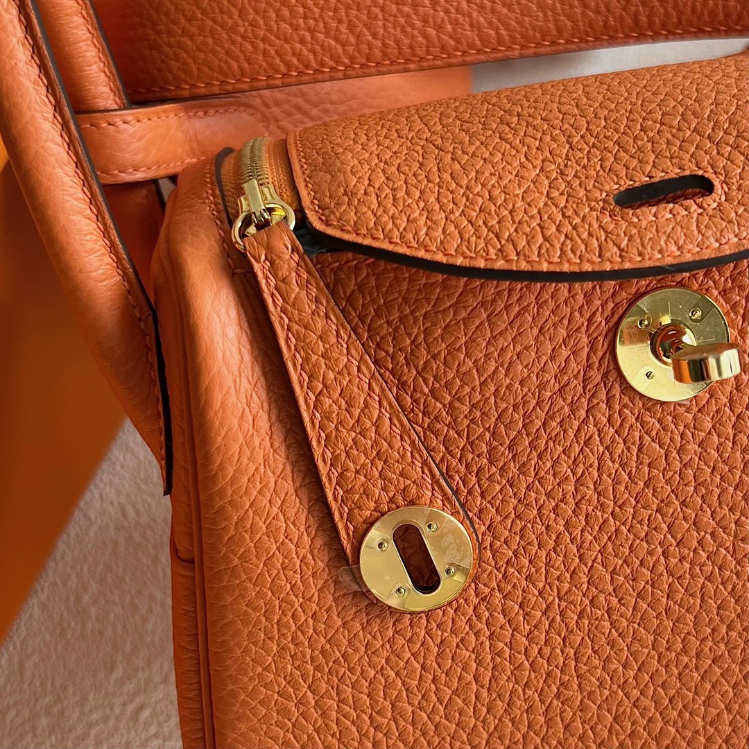 愛馬仕lindy哪種皮更好 Australia Hermès MiniLindy 19cm Clemence 93 Orange Ck93 橙色 金扣