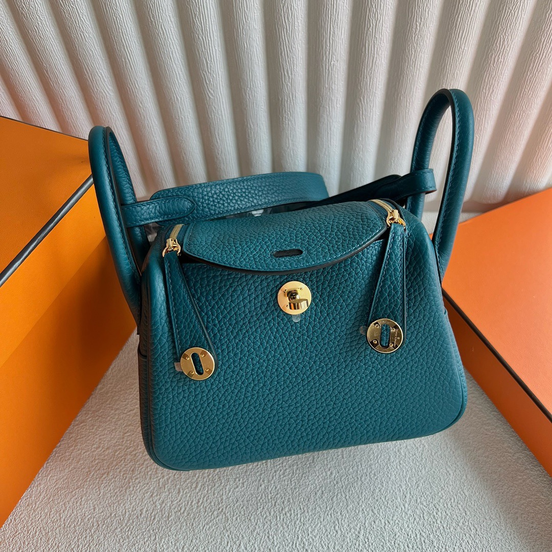 Indonesia Jakarta Hermès MiniLindy 19cm Clemence Vert Bosphore W0博斯普鲁斯绿