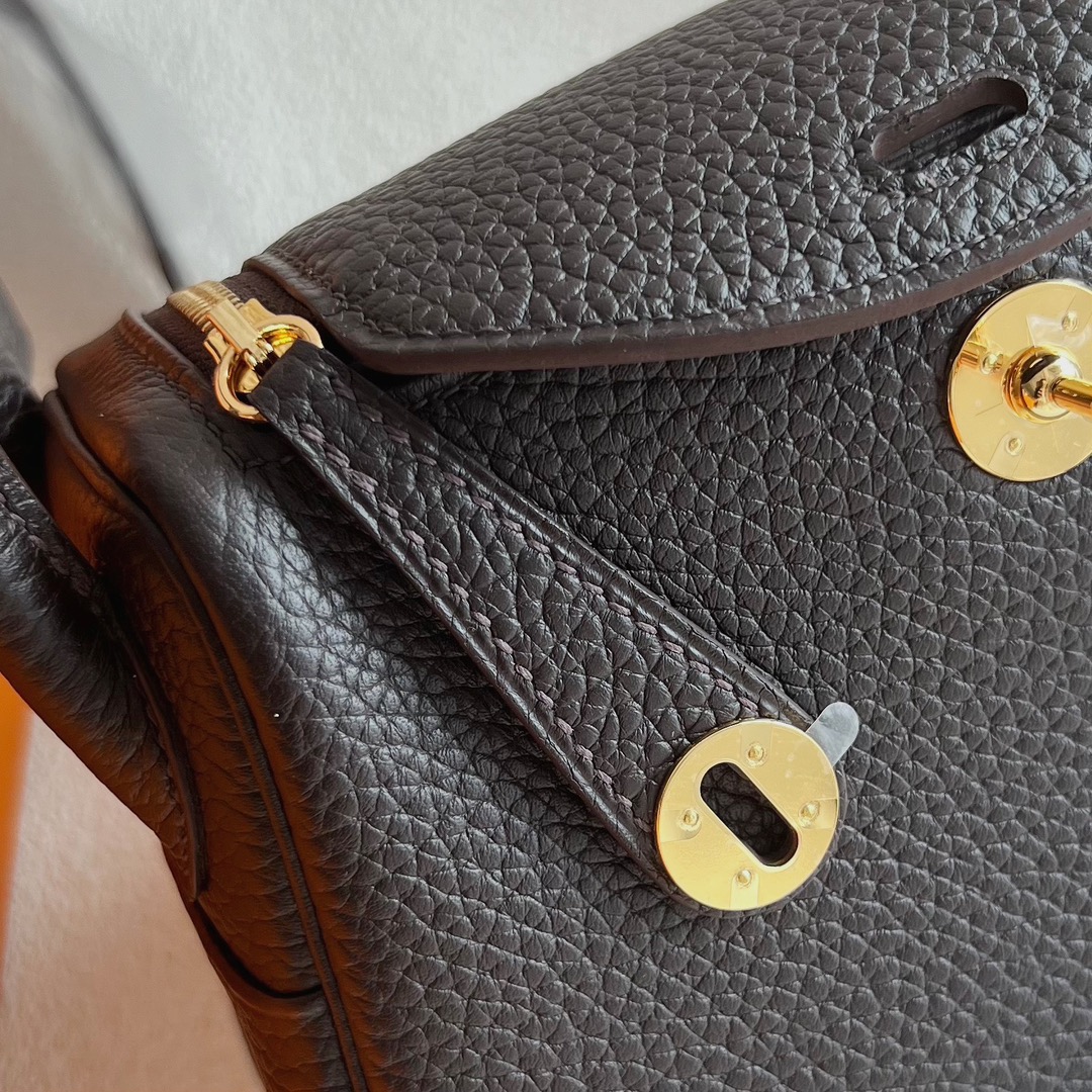 愛馬仕琳迪包官網售價 Malaysia Hermès MiniLindy 19cm Tc皮 Ck46烏木色 Ebene 金扣