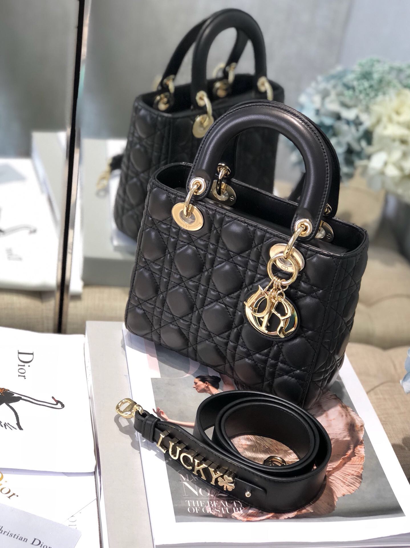 Lady Dior包款將Dior皮具的經典元素完美融合:經典Cannage籐格紋縫線點綴頂級小羊皮,搭配造型圓潤的把手和D.i.o.r吊飾。這款極具層次感的作品,是體現訂製時裝精緻與優雅特色的象徵。此包款以吊飾、寬肩背帶和柔軟的結構重新演繹經典,帶來更時尚的出眾造型。