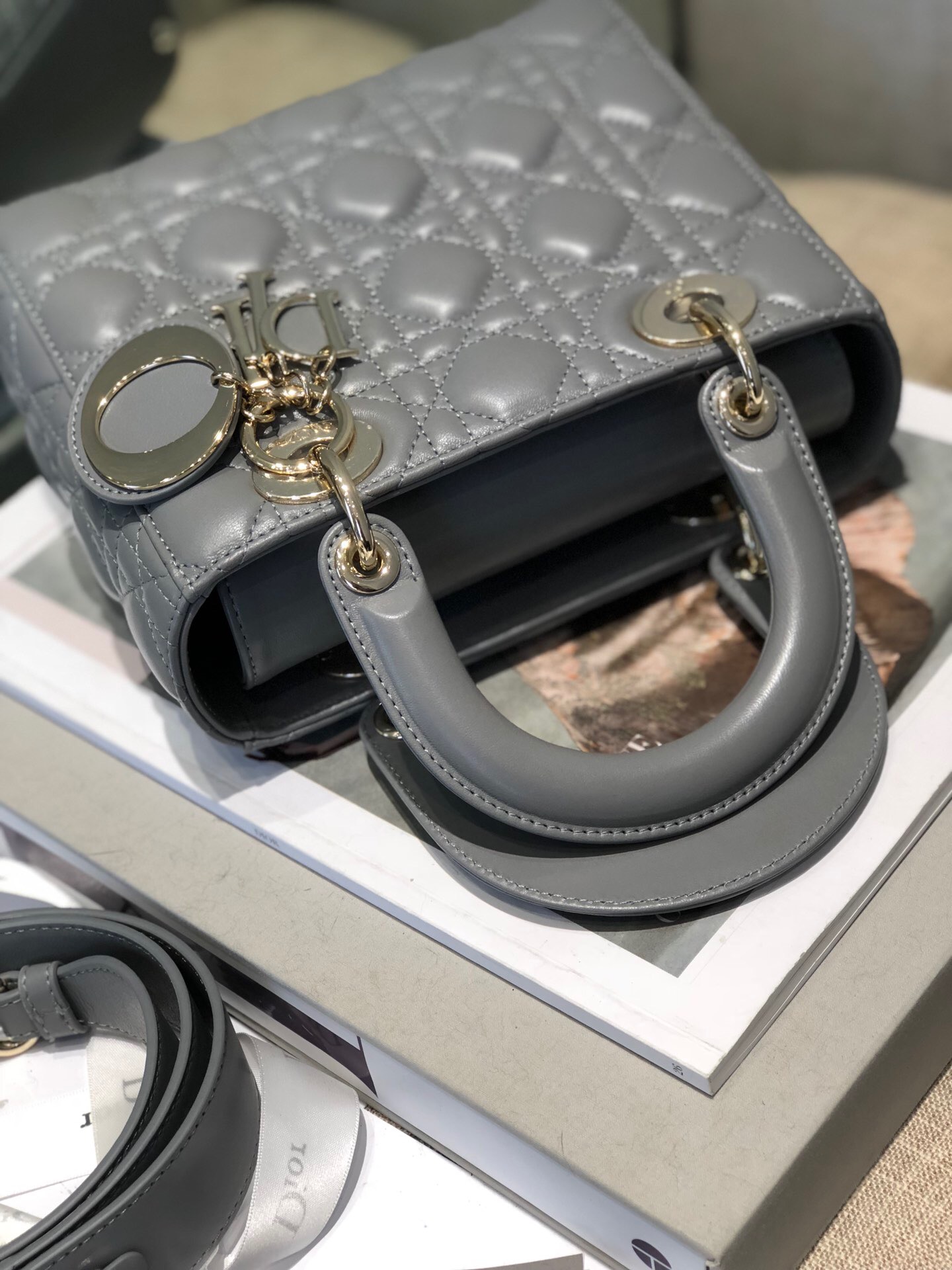 Lady Dior包款將Dior皮具的經典元素完美融合:經典Cannage籐格紋縫線點綴頂級小羊皮,搭配造型圓潤的把手和D.i.o.r吊飾。這款極具層次感的作品,是體現訂製時裝精緻與優雅特色的象徵。此包款以吊飾、寬肩背帶和柔軟的結構重新演繹經典,帶來更時尚的出眾造型。