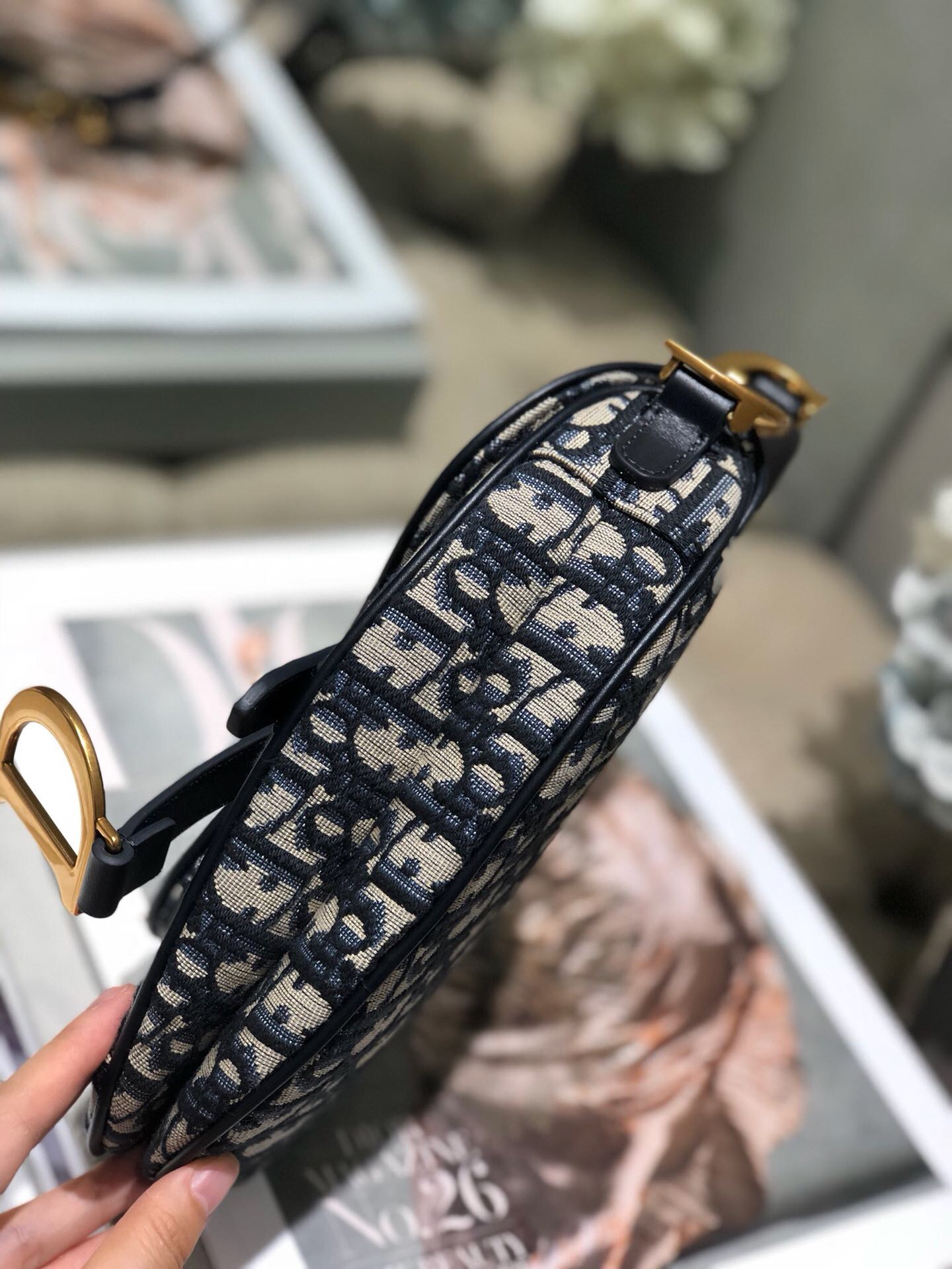 Saddle藍色Dior Oblique緹花帆布迷你包款,點綴頂級小牛皮細節。