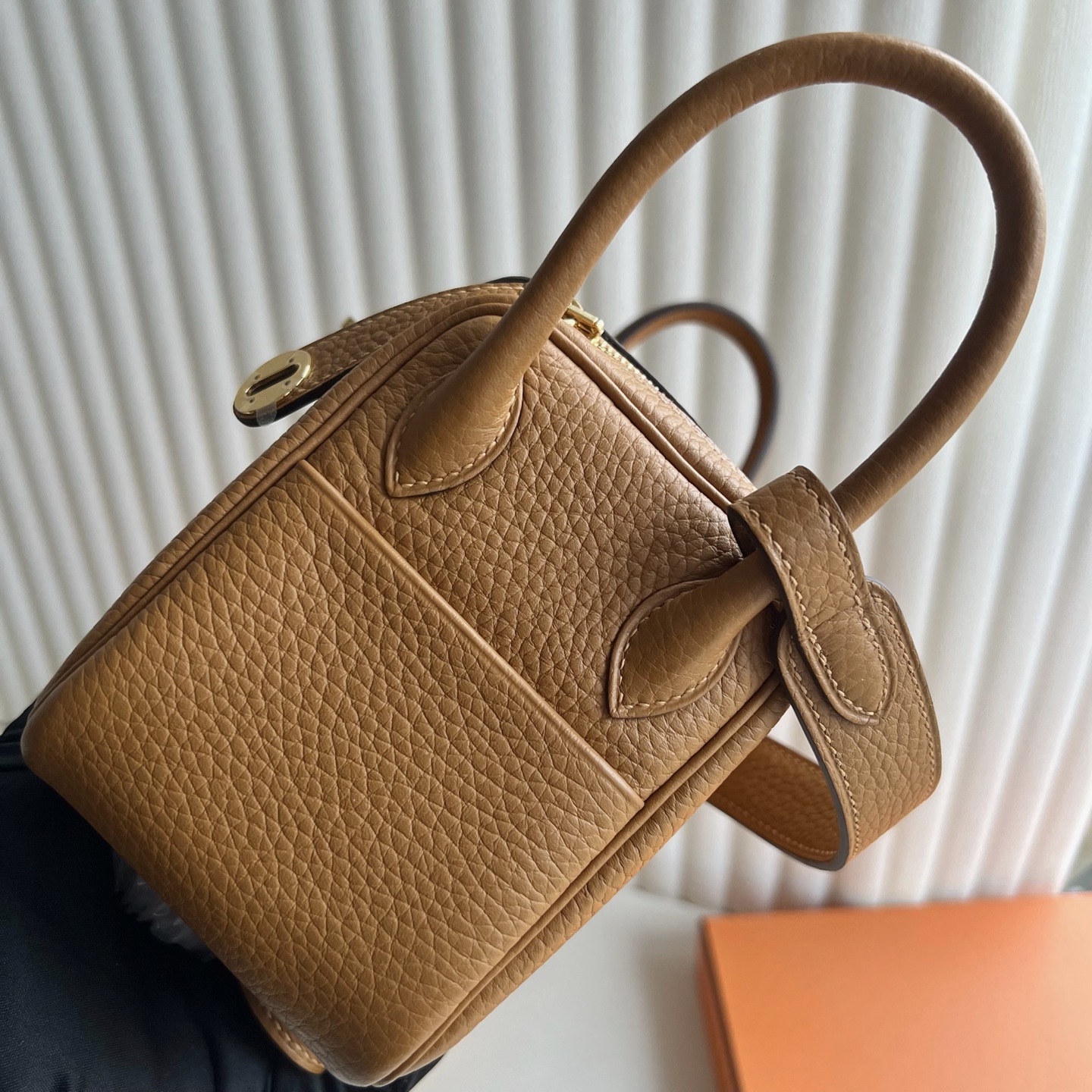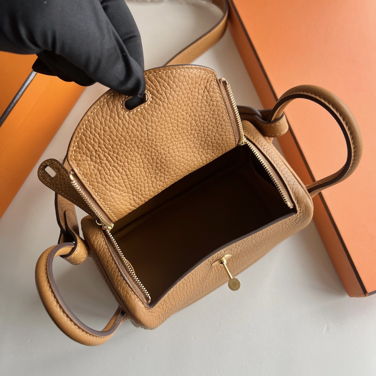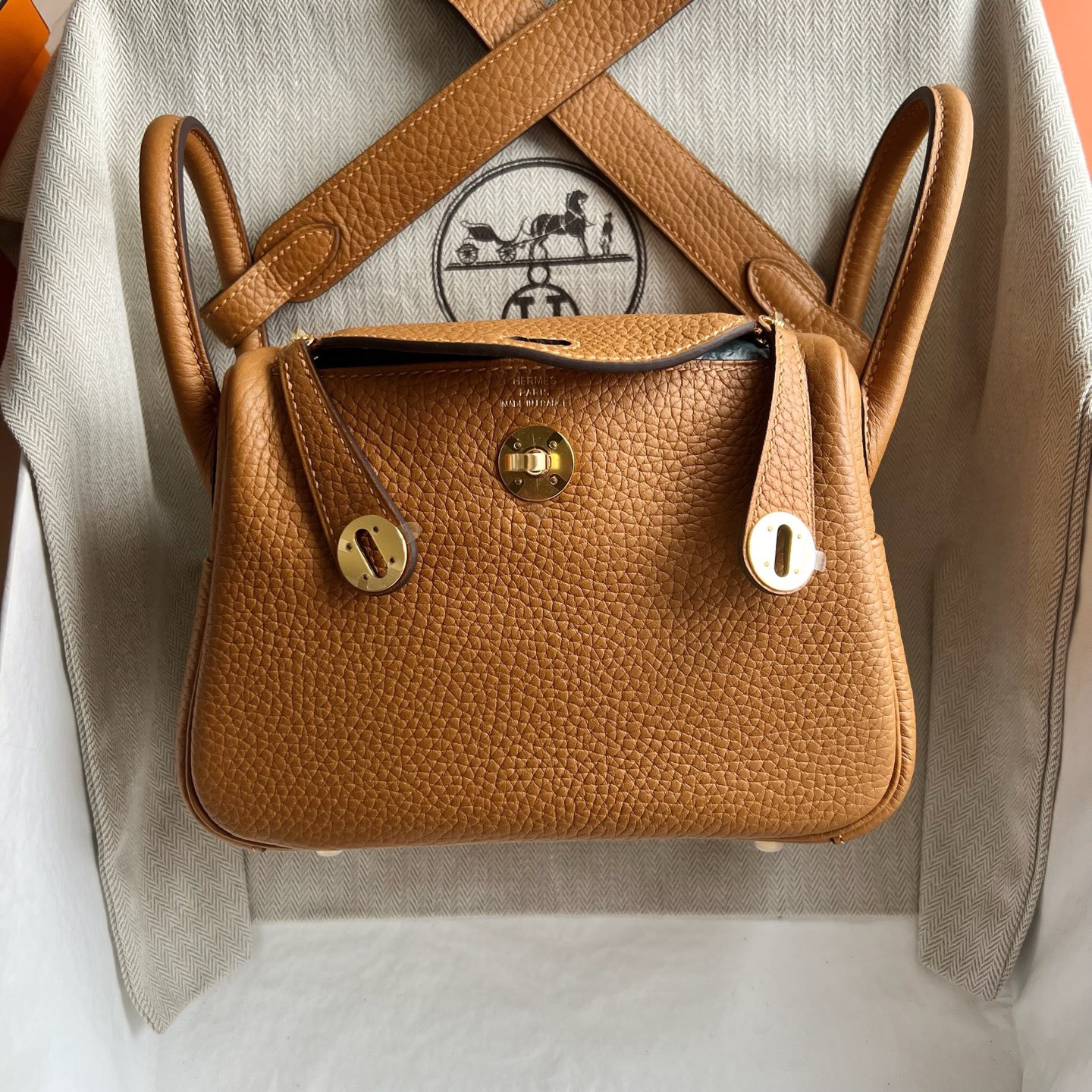 泰国 曼谷 爱马仕 MiniLindy 19cm Clemence sesame 2S芝麻色 金扣