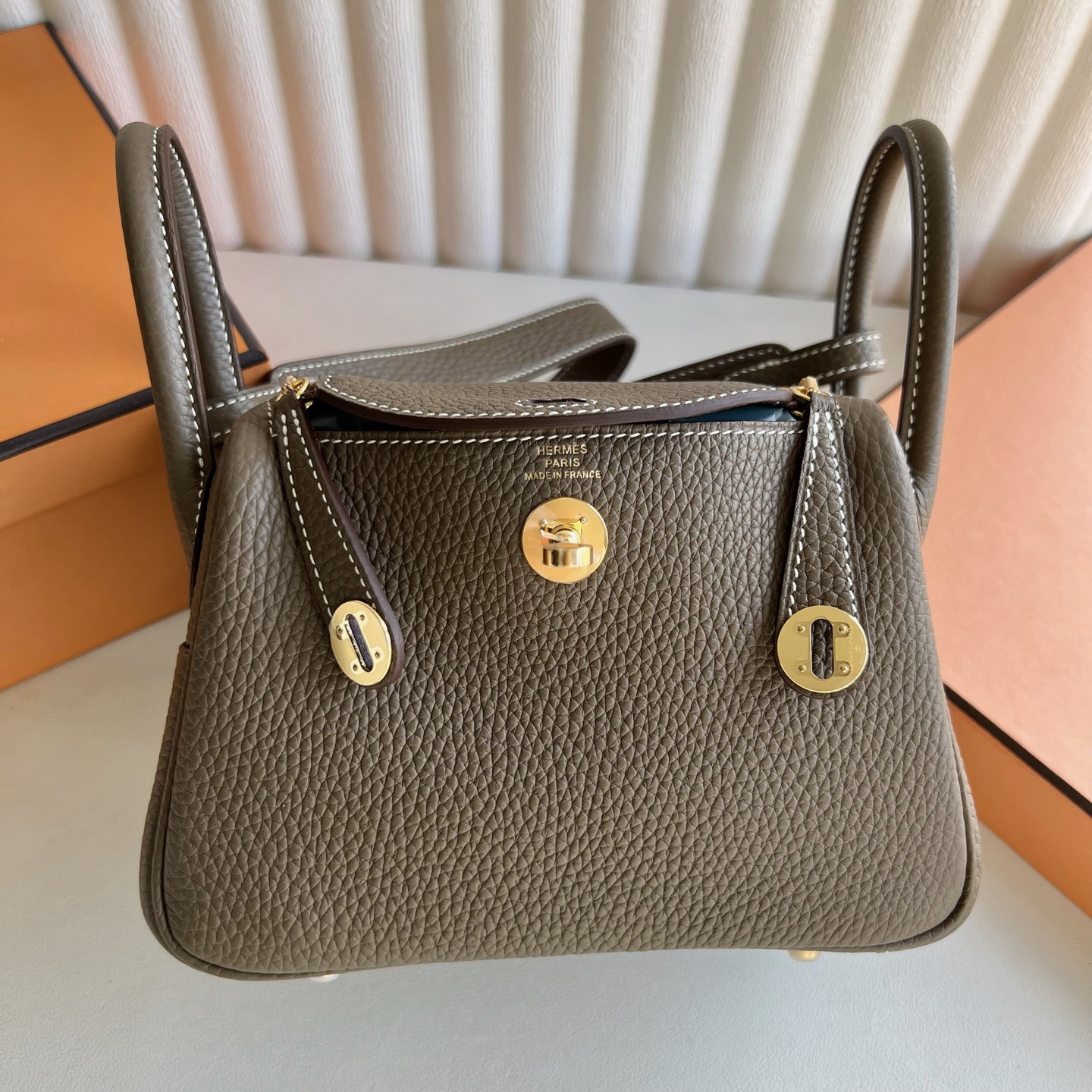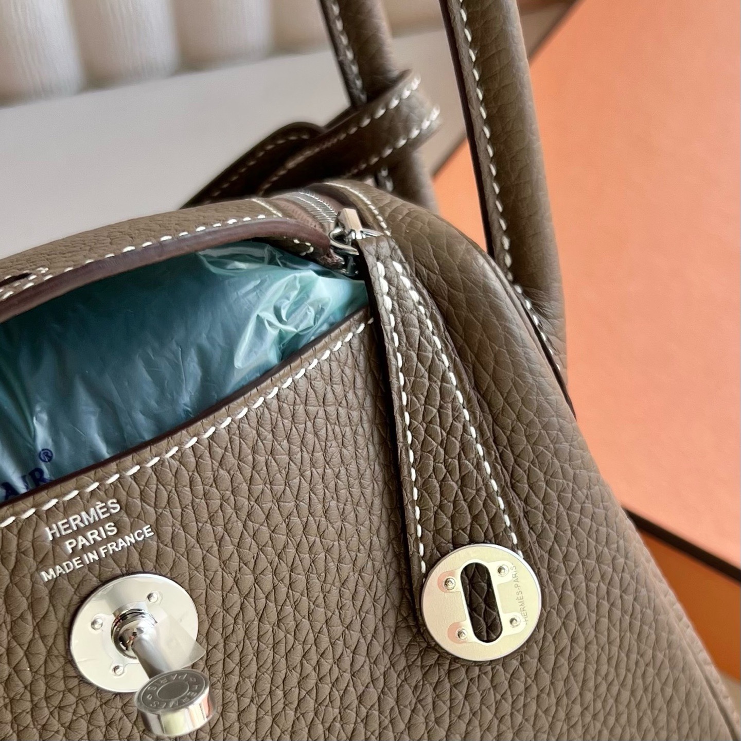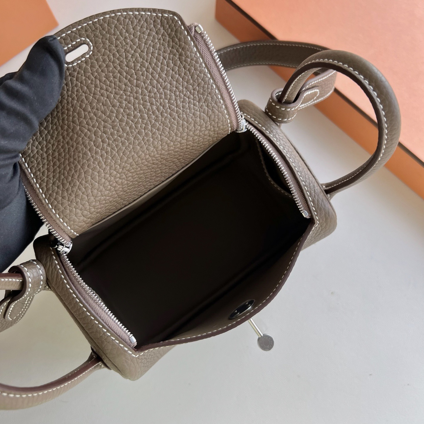 愛馬仕minilindy的刻字在哪 Russia Hermès MiniLindy 19cm Clemence 大象灰 Etoupe Phw