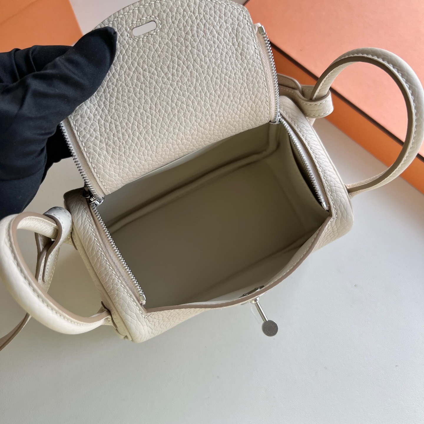 愛馬仕minilindy多少錢 北京海澱區 Hermès MiniLindy 19cm Clemence 10奶昔白 Craie Phw