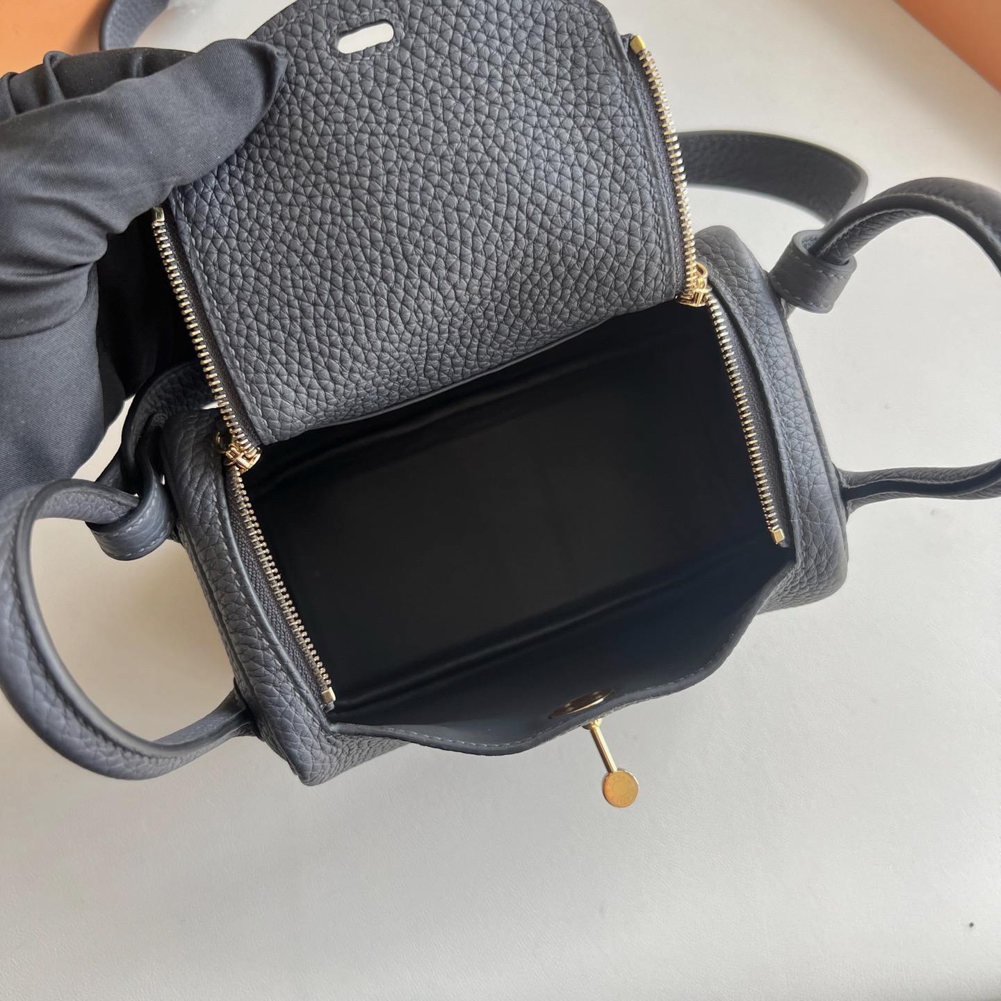 香港觀塘區觀塘 愛馬仕 MiniLindy 19cm Clemence 原廠tc大牛皮 H0霧霾灰 Gris Misty Ghw