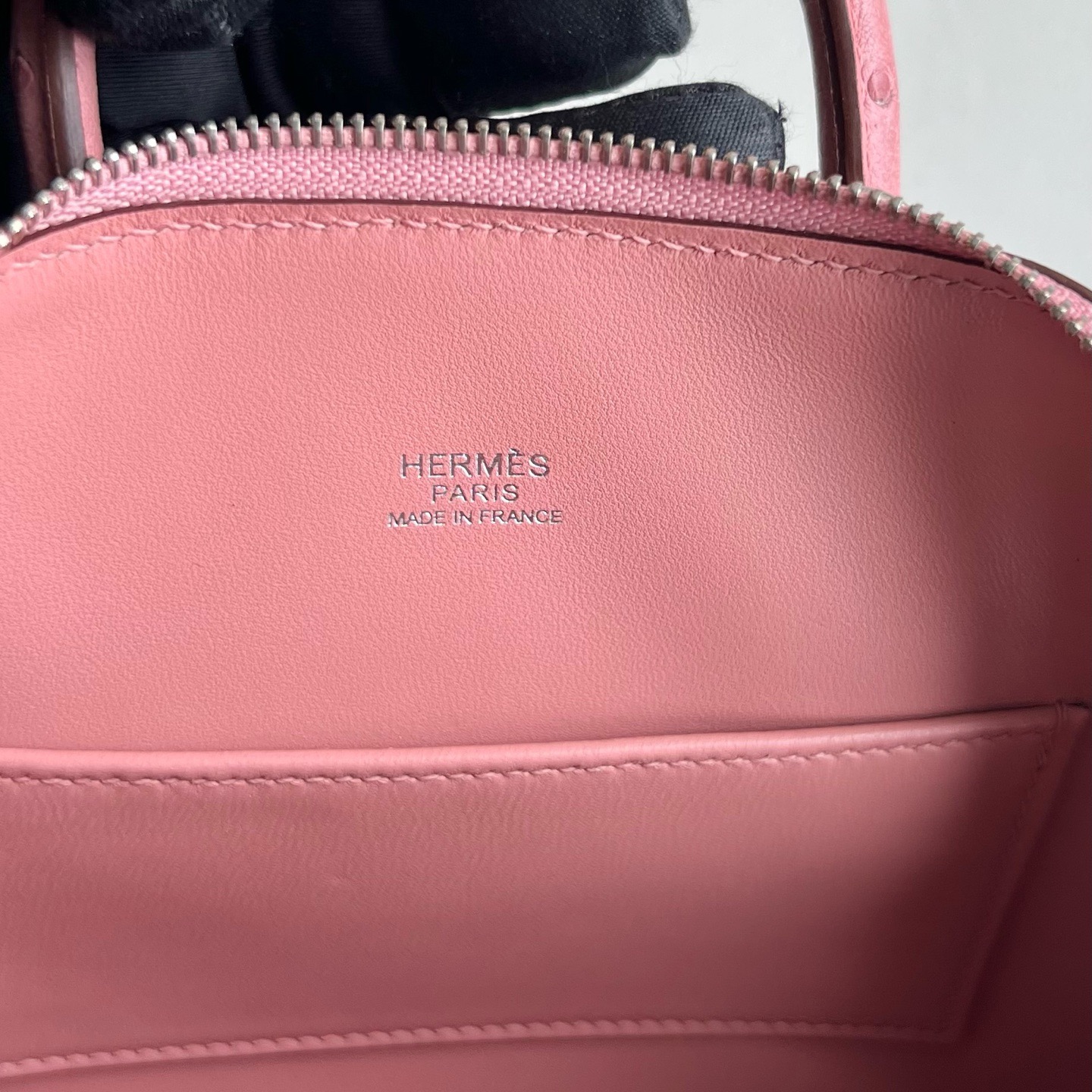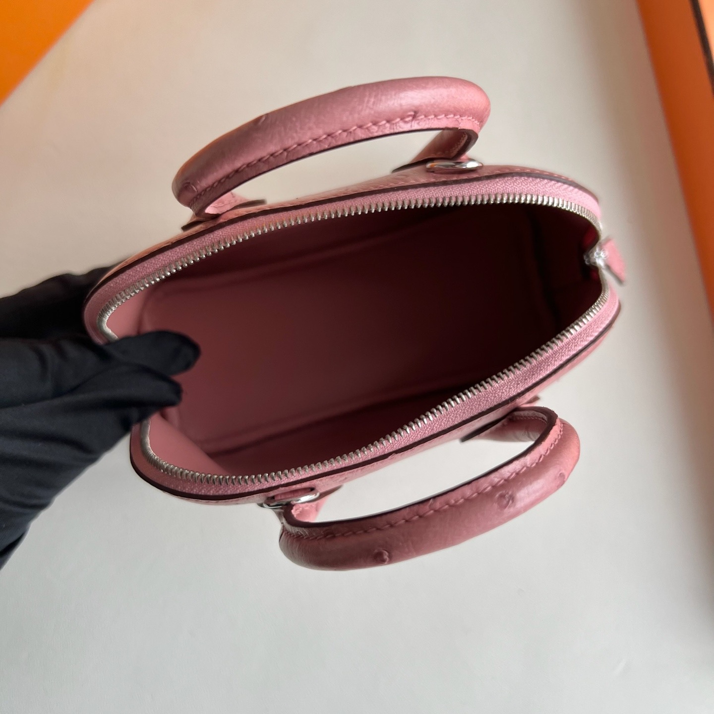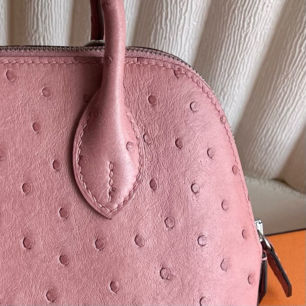 愛馬仕保齡球包真假鑒定圖解 北京 Hermès MiniBolide Ostrich 陶瓷粉 Terre Cuite Phw
