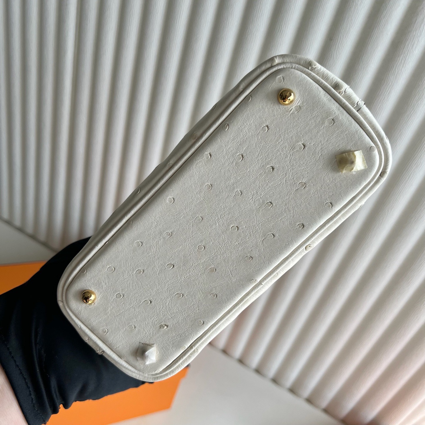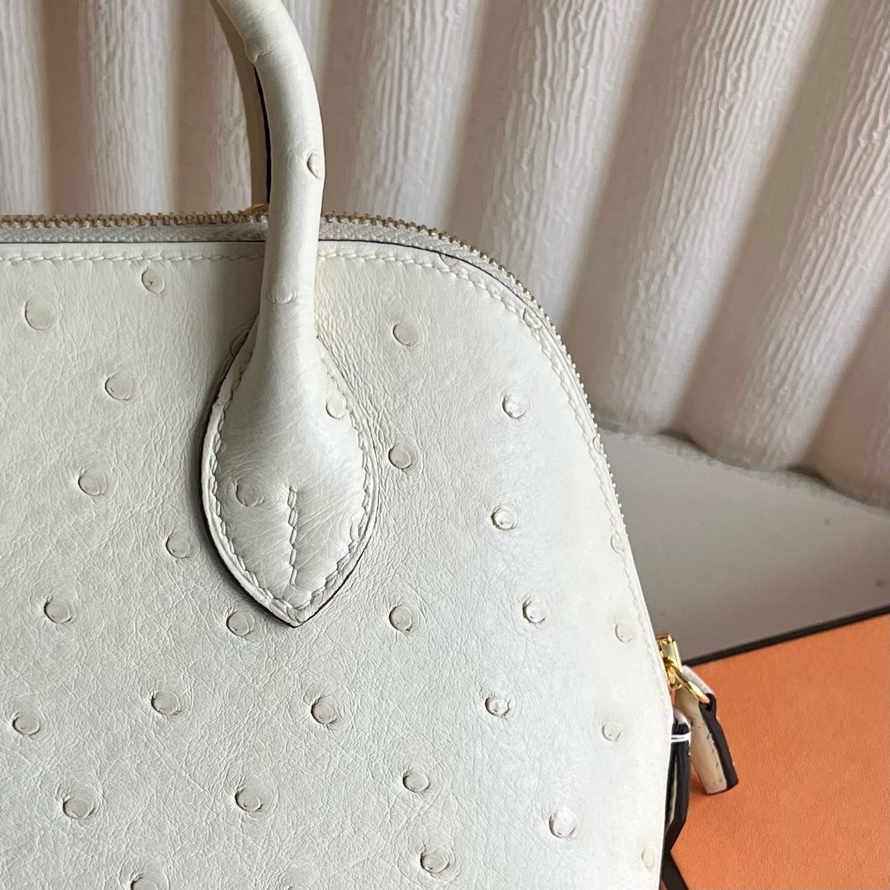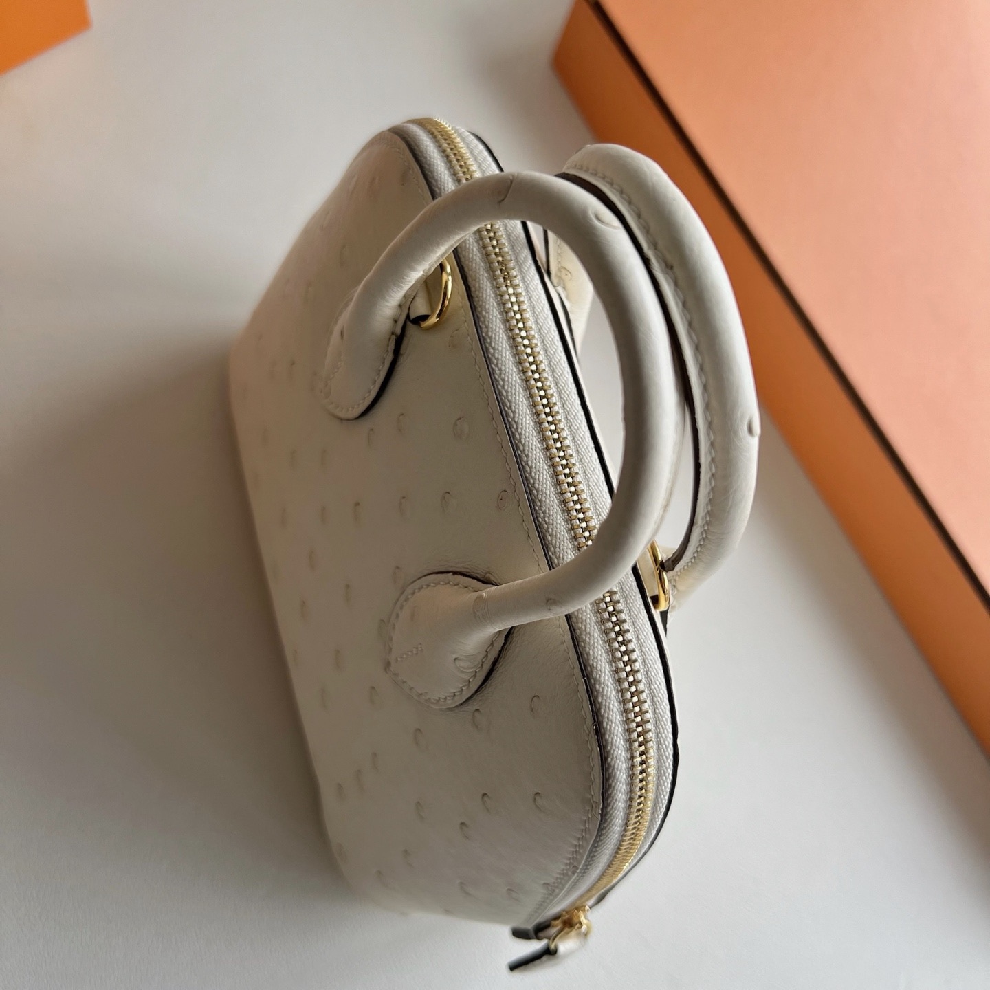 愛馬仕香港官網價格查詢 MiniBolide 20cm Ostrich 鴕鳥皮 I2奶油白 Nata Ghw