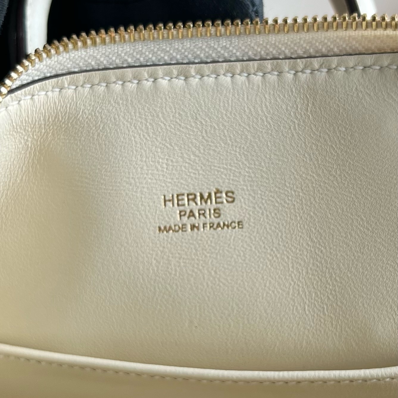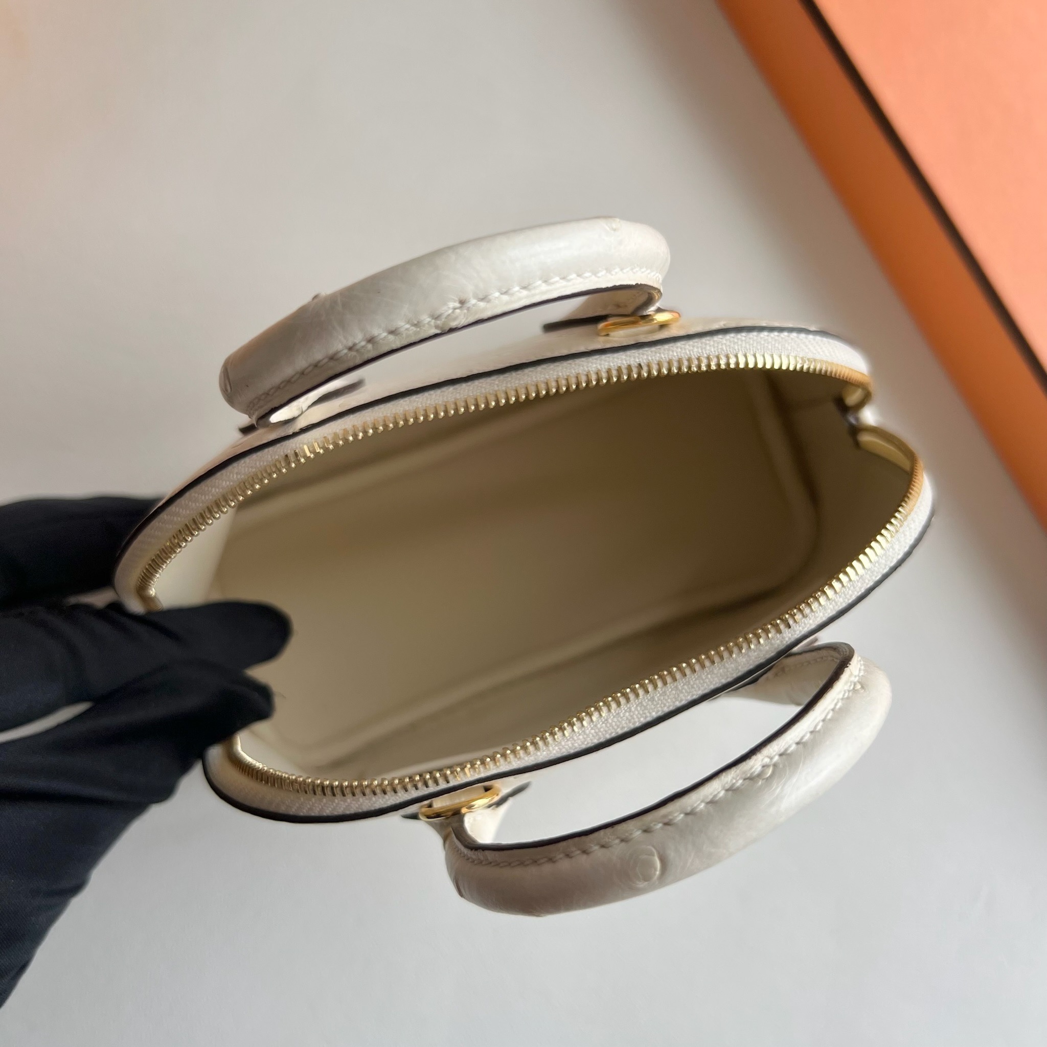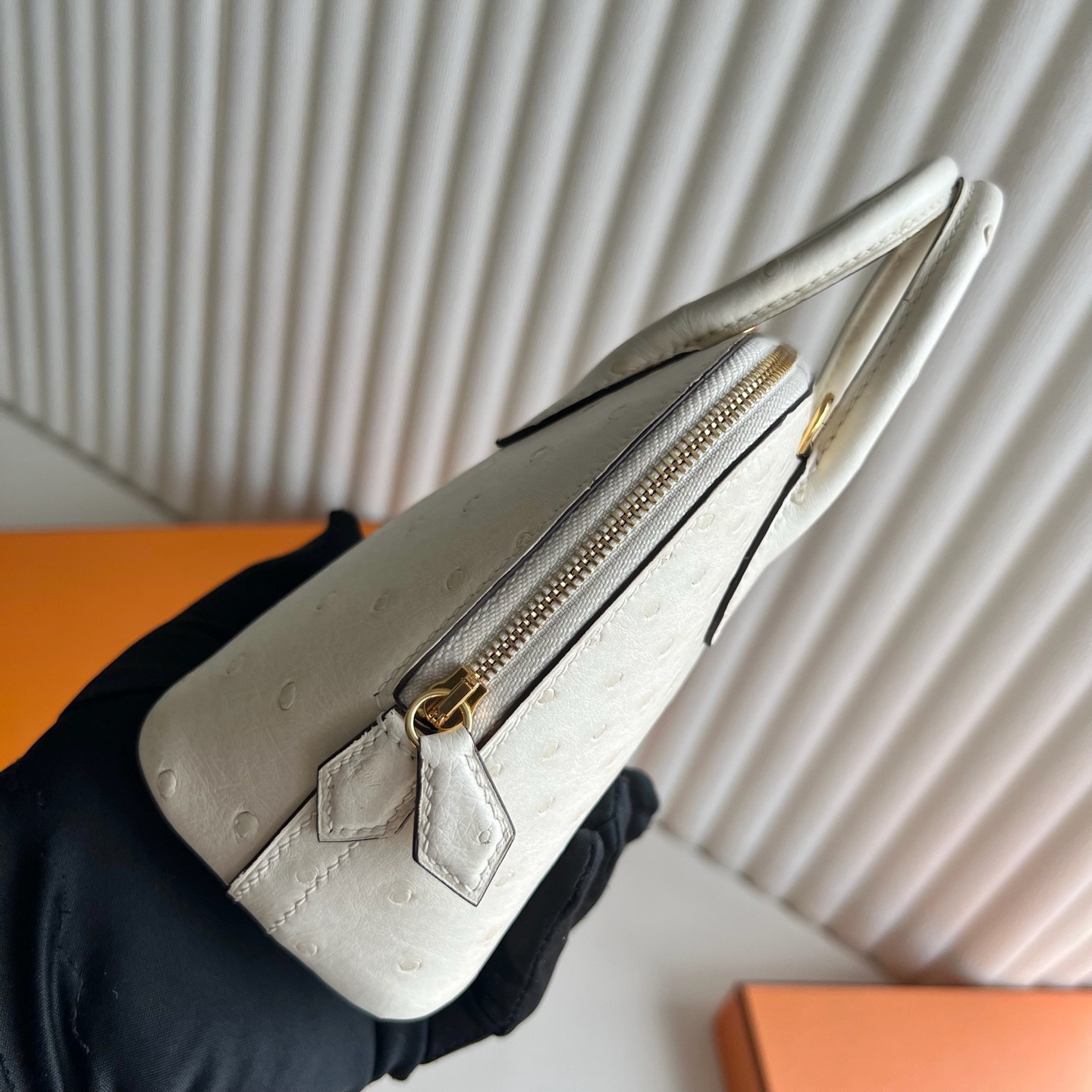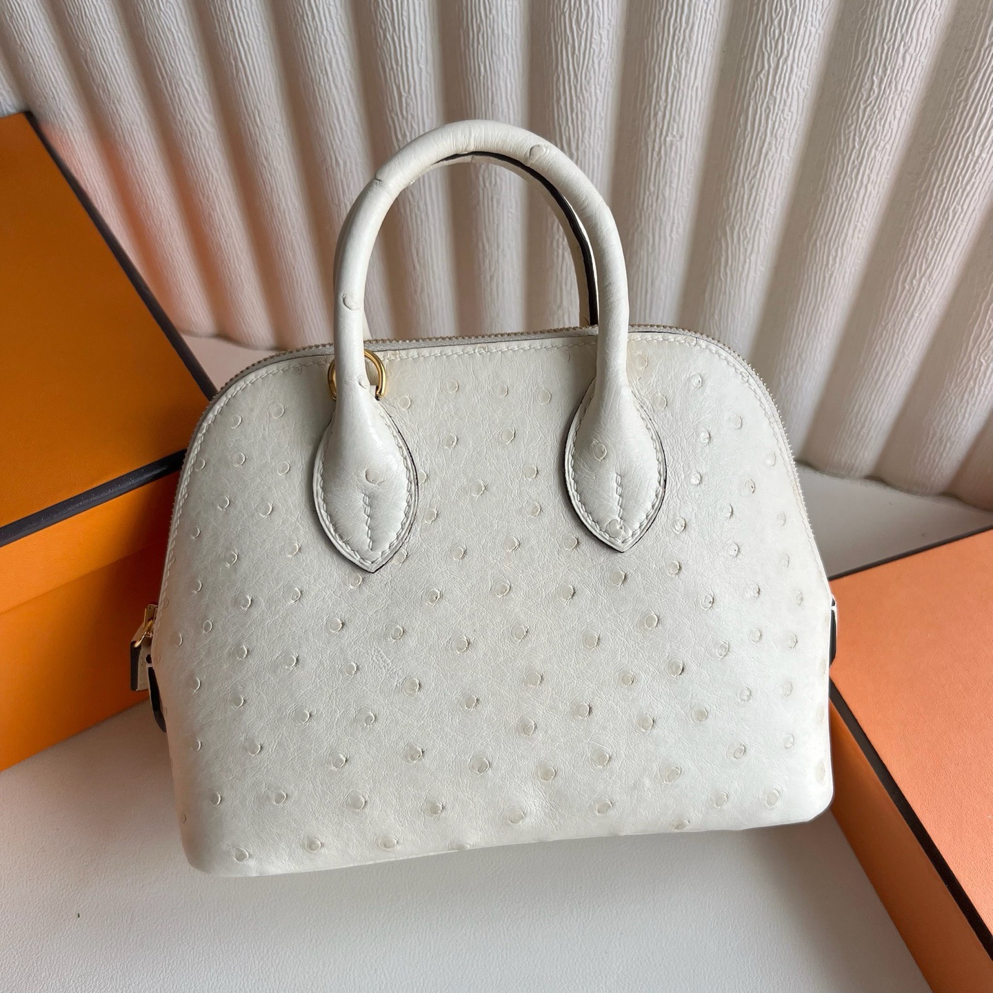 愛馬仕香港官網價格查詢 MiniBolide 20cm Ostrich 鴕鳥皮 I2奶油白 Nata Ghw