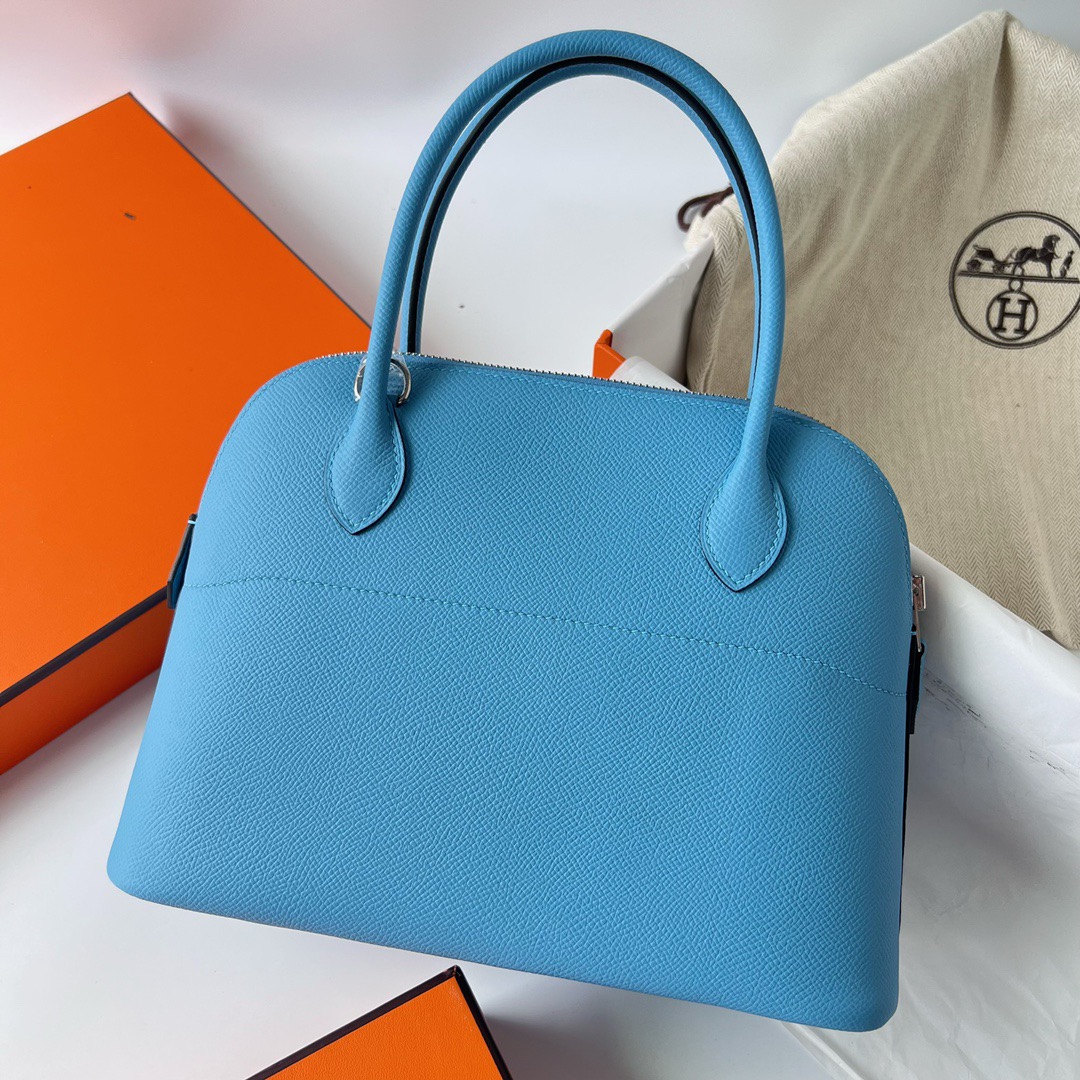泰國 曼谷 愛馬仕 保齡球Bolide 27cm Epsom手掌紋P3 Bleu Du Nord 銀扣