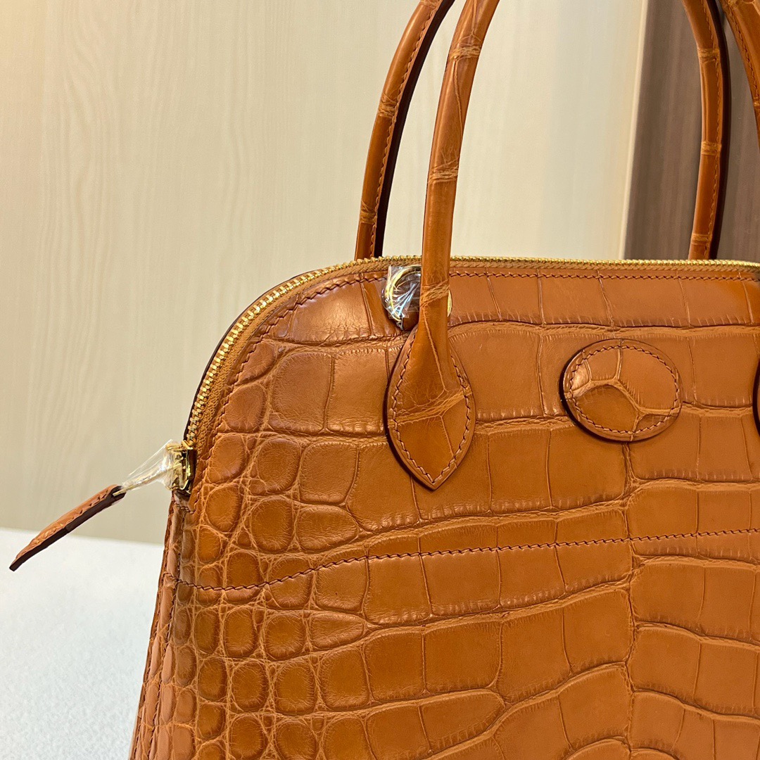 Kuwait Hermès Bolide 霧面美洲鱷魚 Matte Alligator Crocodile Gold 金棕色