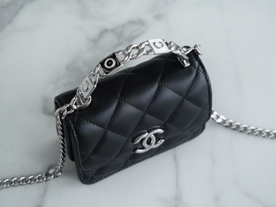 迷妳包型搭配粗鏈條呈現出一種反差萌感,包裏自帶卡槽,鏈條可拆卸