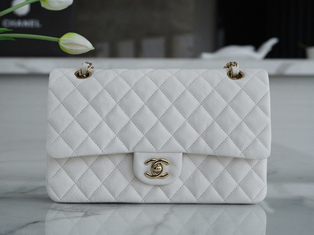 Chanel classic flap 口蓋包 香奈兒官網女包價格查詢 CF 中號水洗胎牛皮奶昔白
