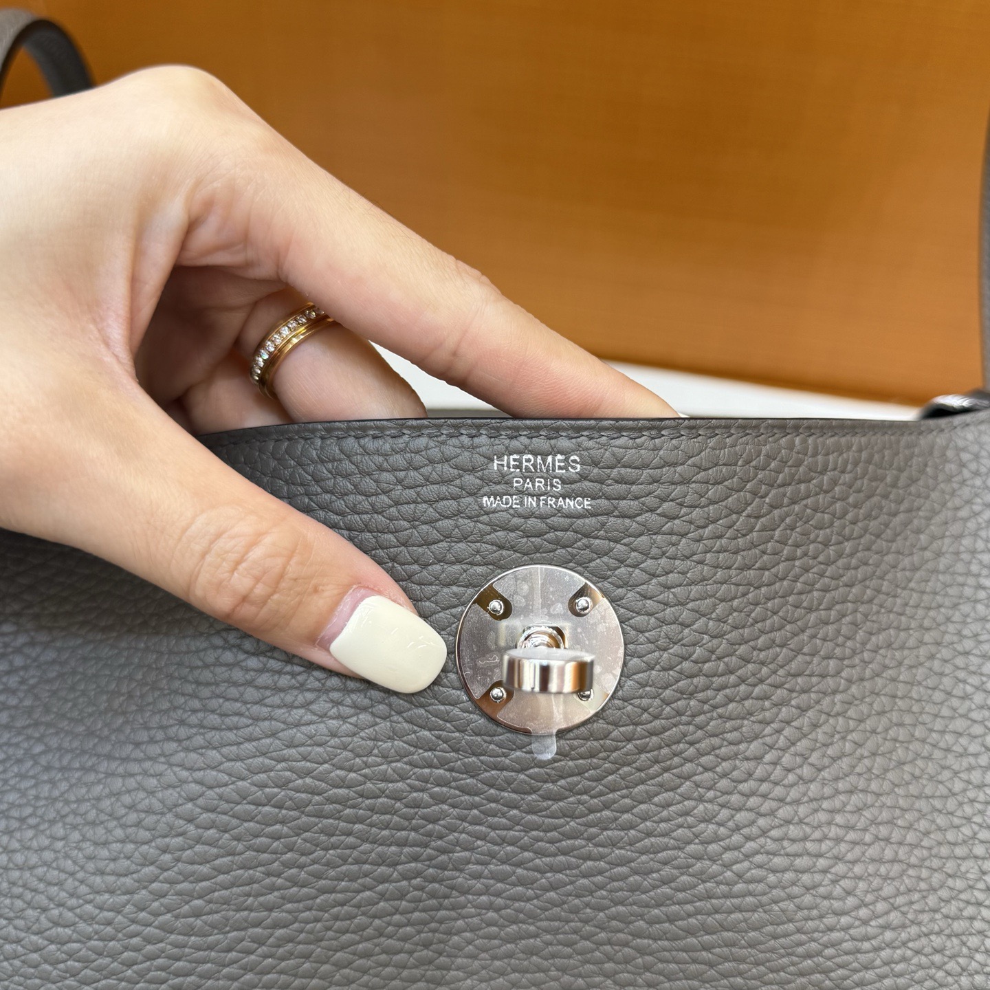 香港西灣河 Hermès Lindy 26cm Clemence tc大牛皮 锡器灰 Etain Phw 全手工蠟線縫