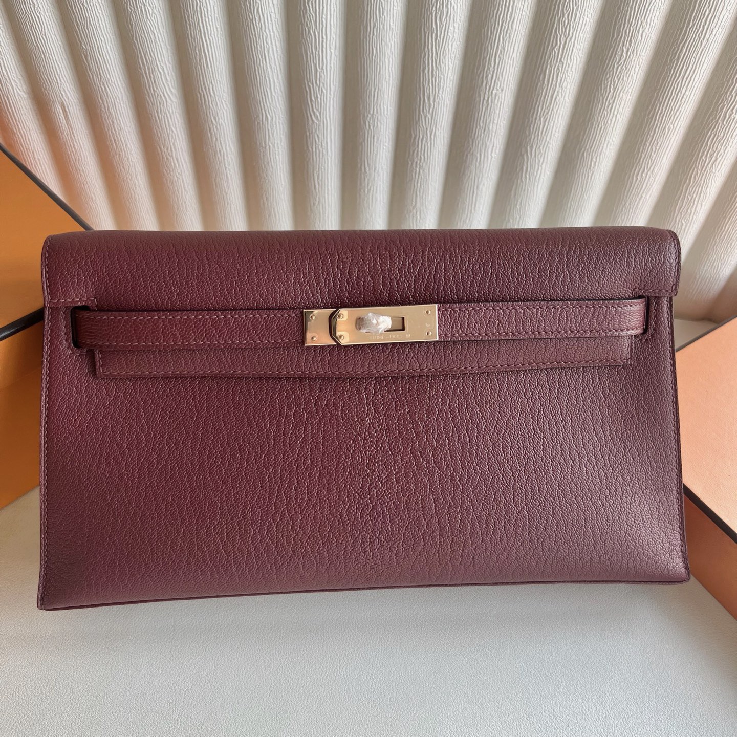 成都有爱马仕包包专柜吗 爱马仕 Hermès KellyElan 山羊皮 Ck18大象灰Etoupe 银扣