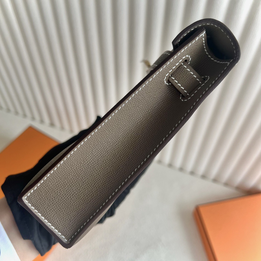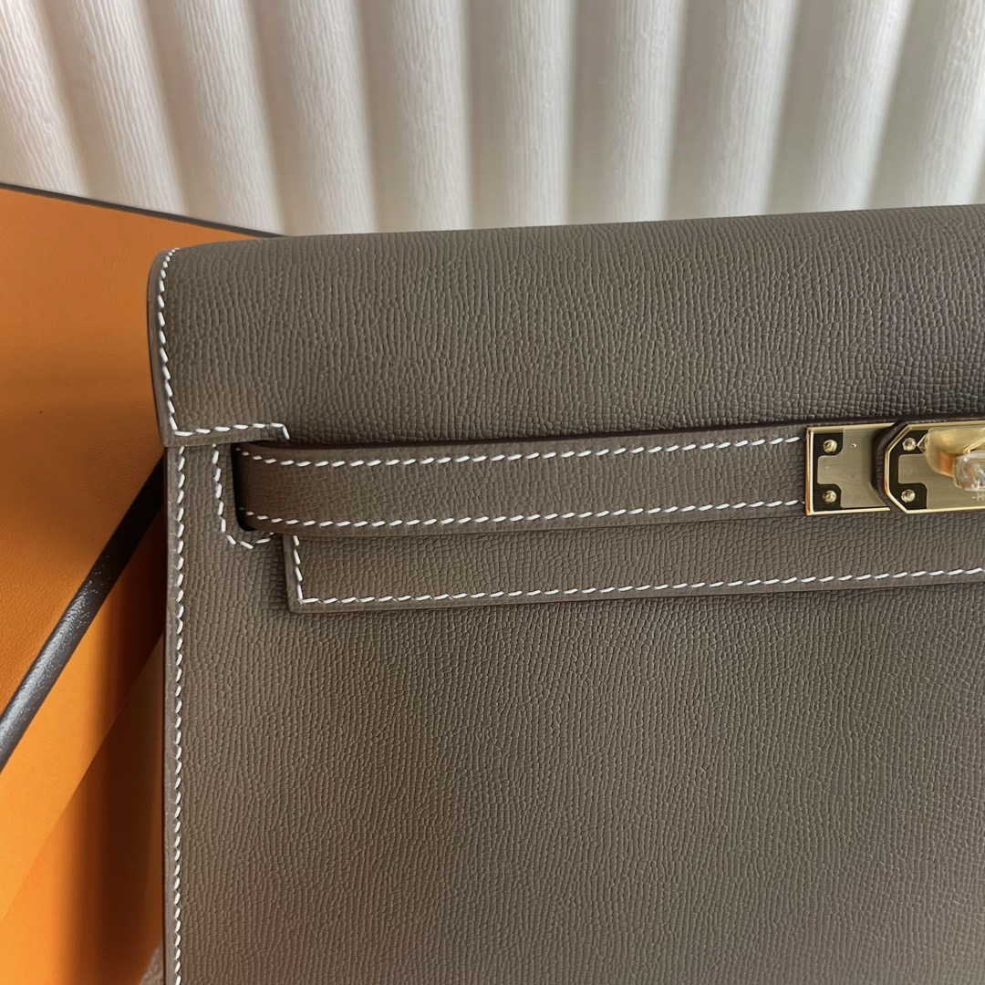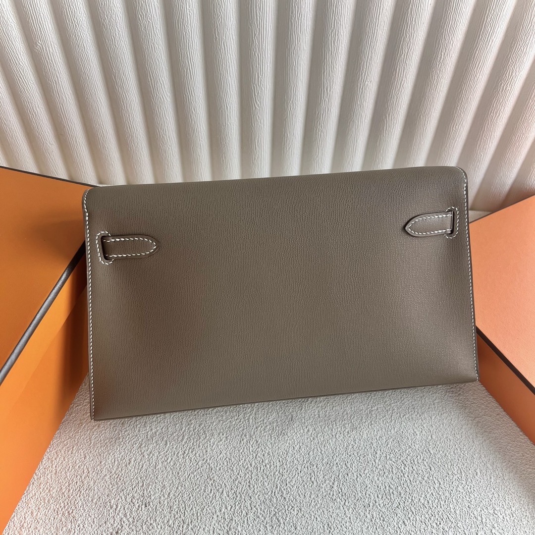 成都有爱马仕包包专柜吗 爱马仕 Hermès KellyElan 山羊皮 Ck18大象灰Etoupe 银扣