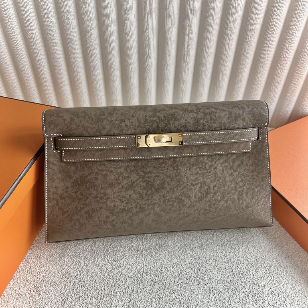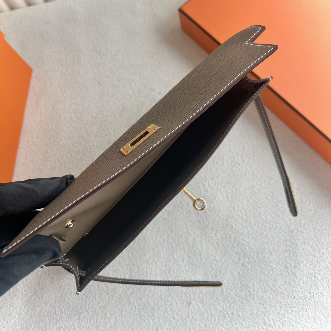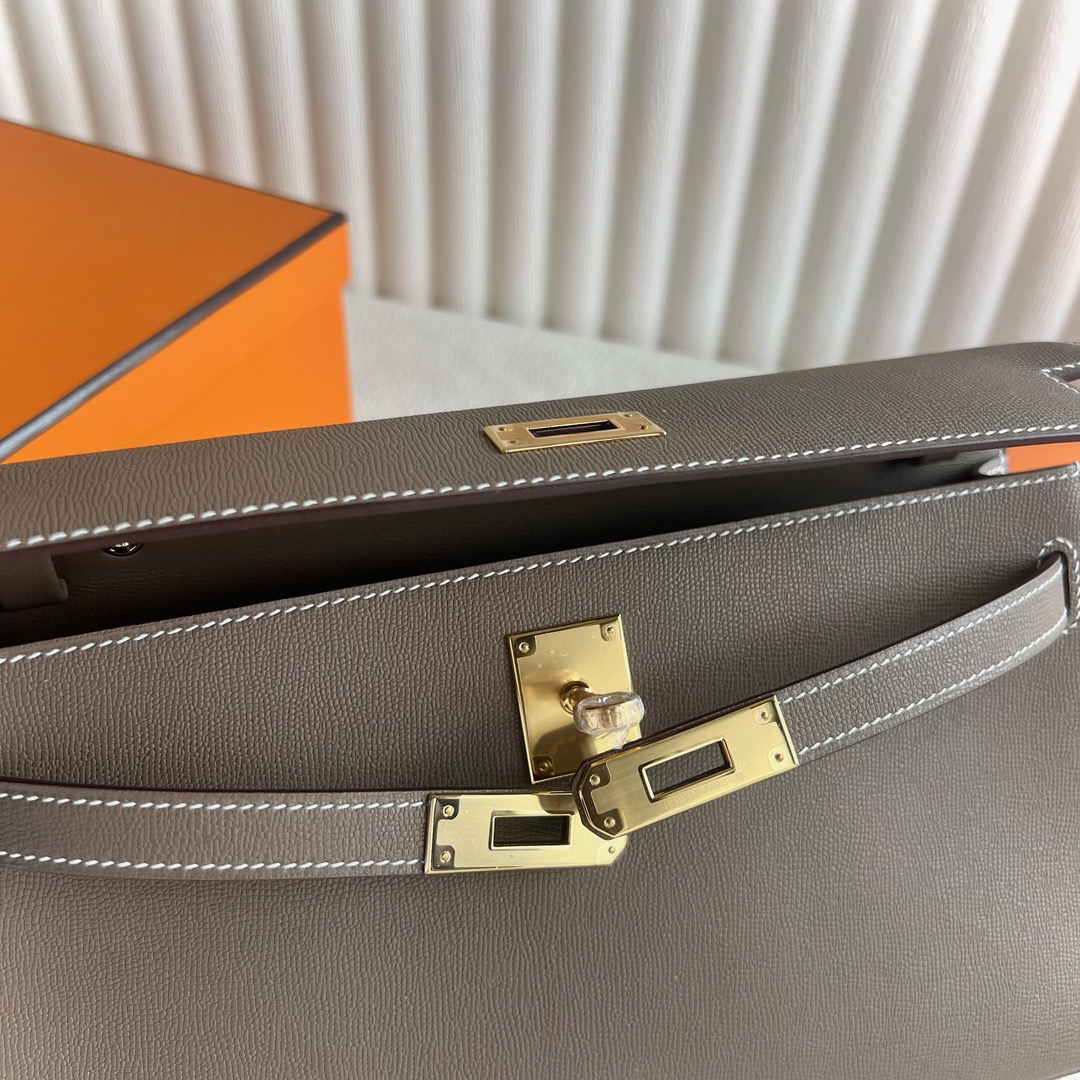 成都有爱马仕包包专柜吗 爱马仕 Hermès KellyElan 山羊皮 Ck18大象灰Etoupe 银扣