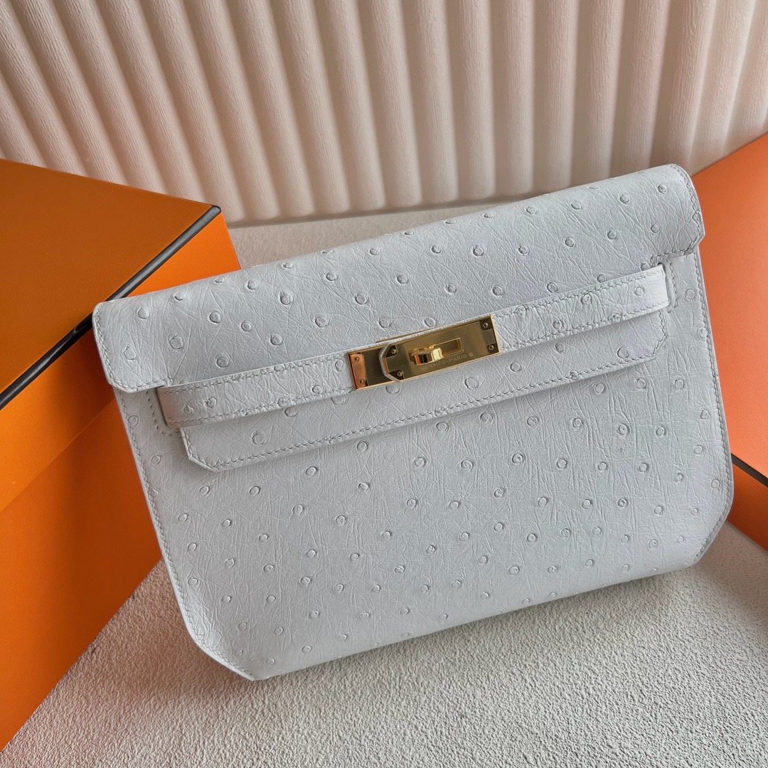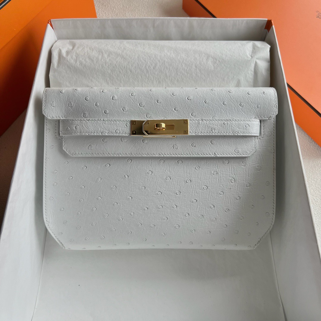 臺灣高雄市 愛馬仕Hermès KellyDepeches 25cm Ostrich KK鴕鳥皮 Blanc Ghw