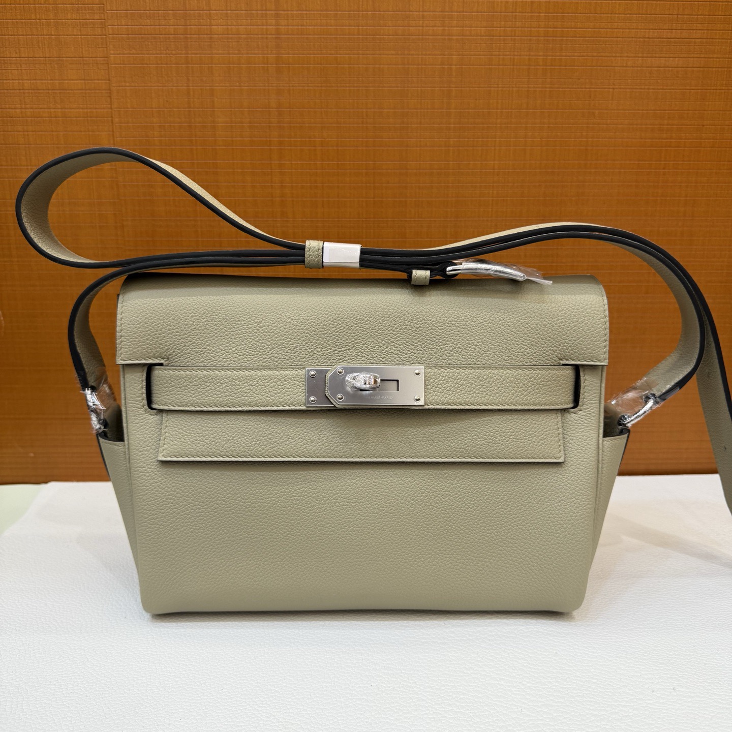 kelly messenger燙印 香港南區深水灣 KellyMessenger 郵差包 Togo皮 鼠尾草綠 銀扣