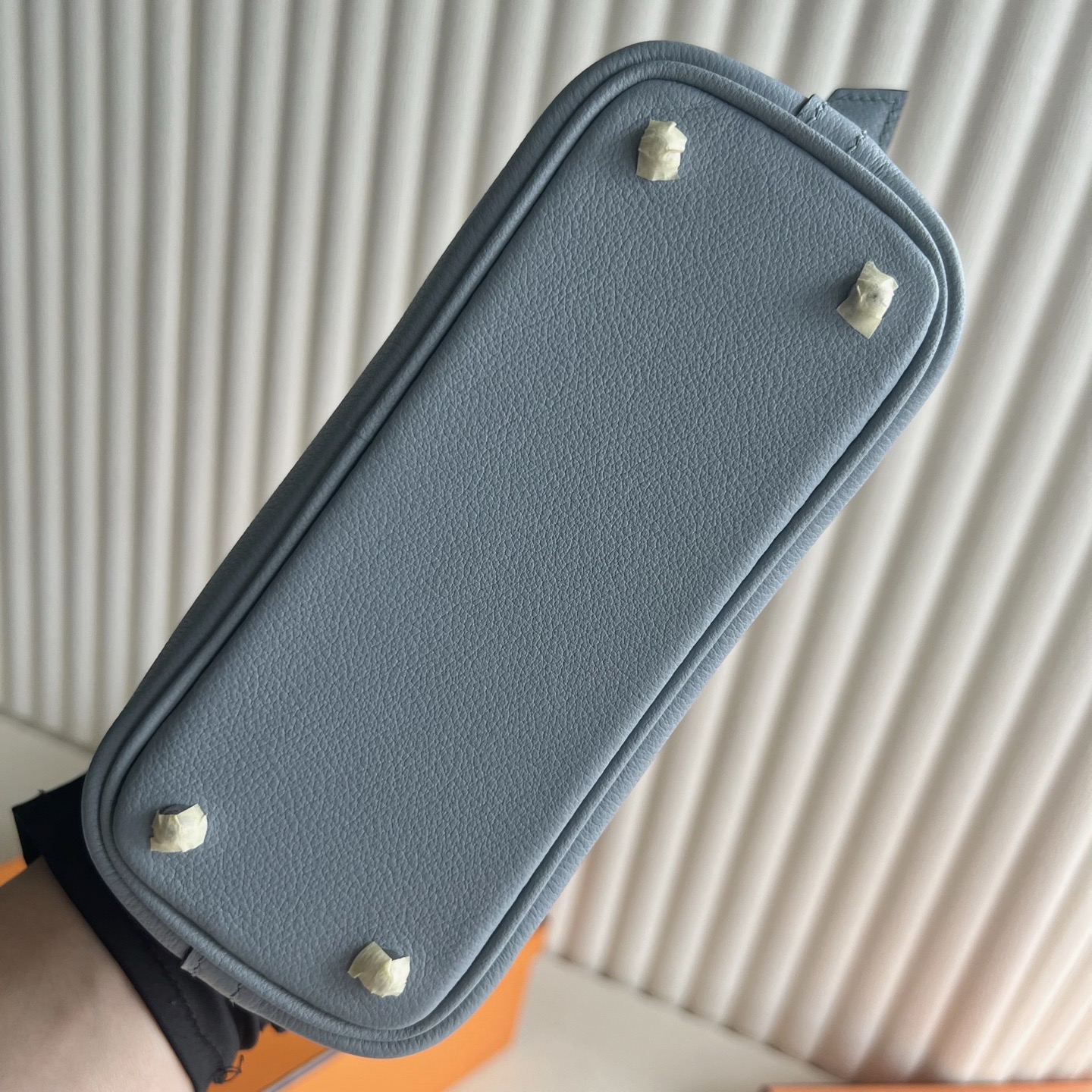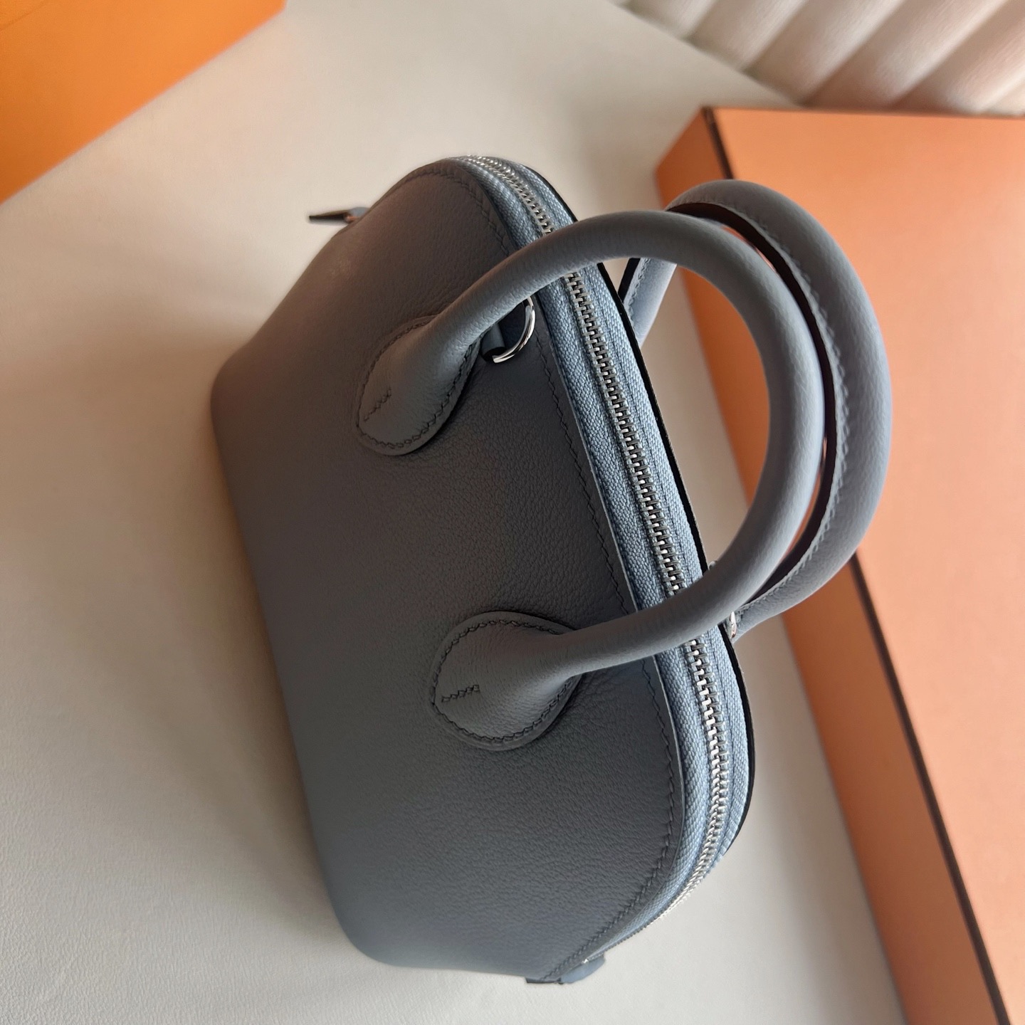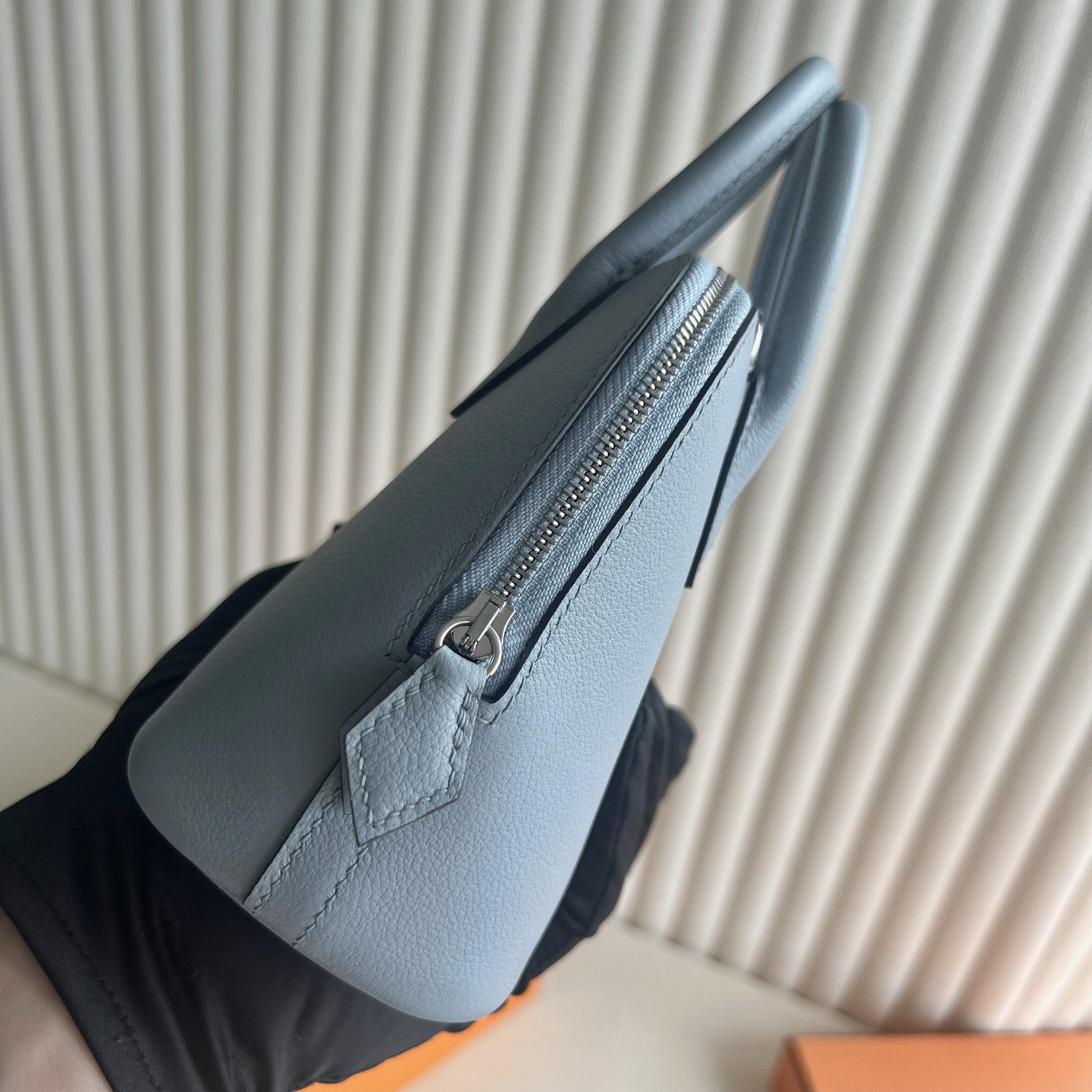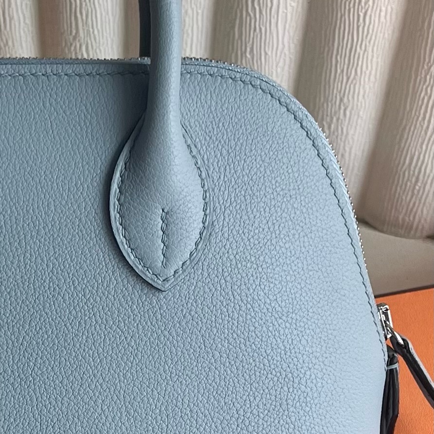 愛馬仕歐洲官網入口 Hermès MiniBolide 20cm Evercolor J7 blue lin 亞麻藍 銀扣