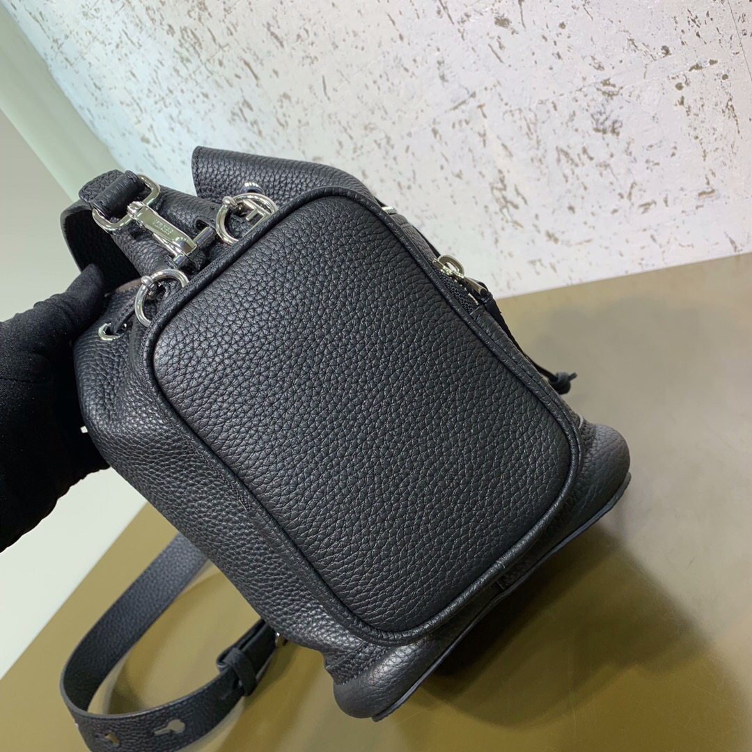 Mon Tresor小號水桶包,配有抽繩和Fendi標識形狀的細節。手袋有壹個內袋和壹條可用紐扣調節的可拆卸肩帶。另有兩個外部側袋和兩個正面拉鏈口袋。黑色羅馬皮革材質。鍍鈀金屬飾面。