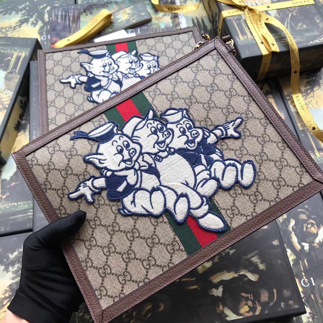 gucci女包 古馳官網圖片 三只小豬圖案高級人造帆布手拿包 款號557697 9U8KT 8748