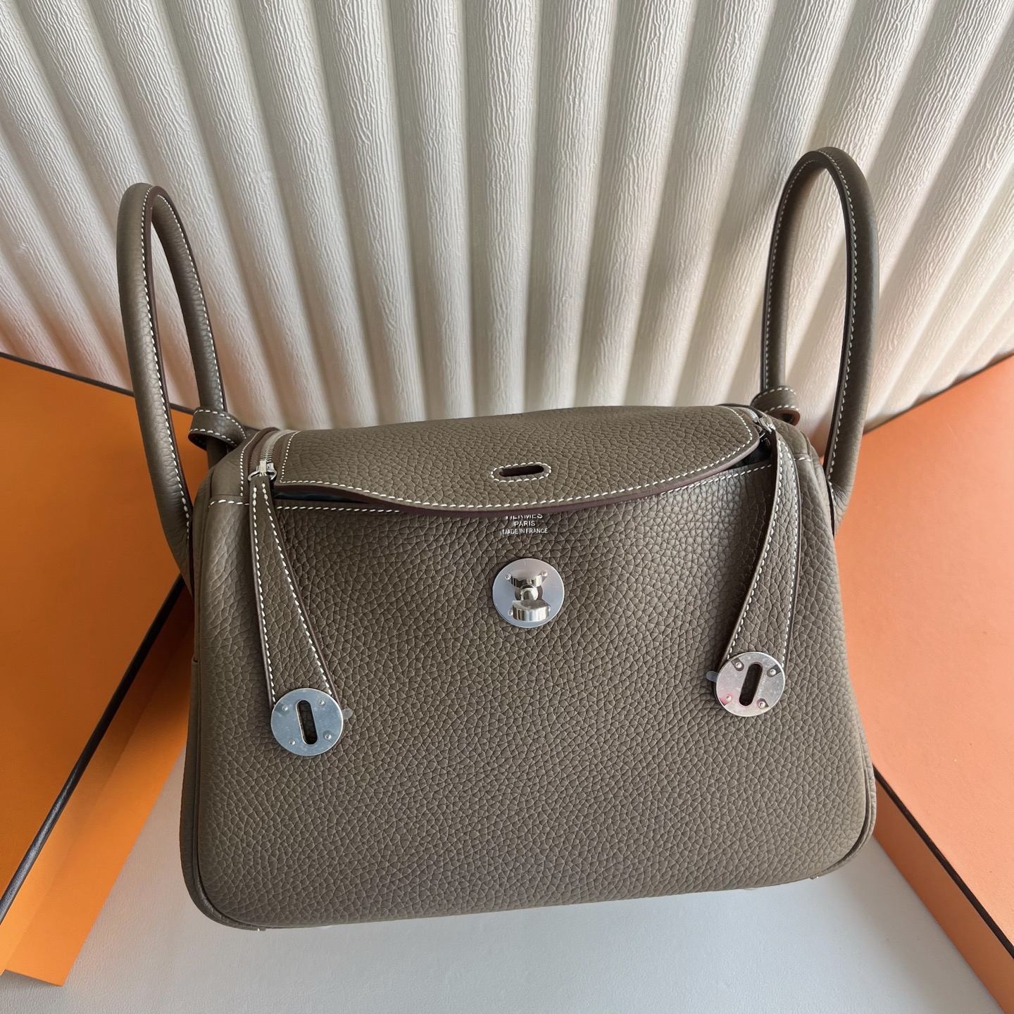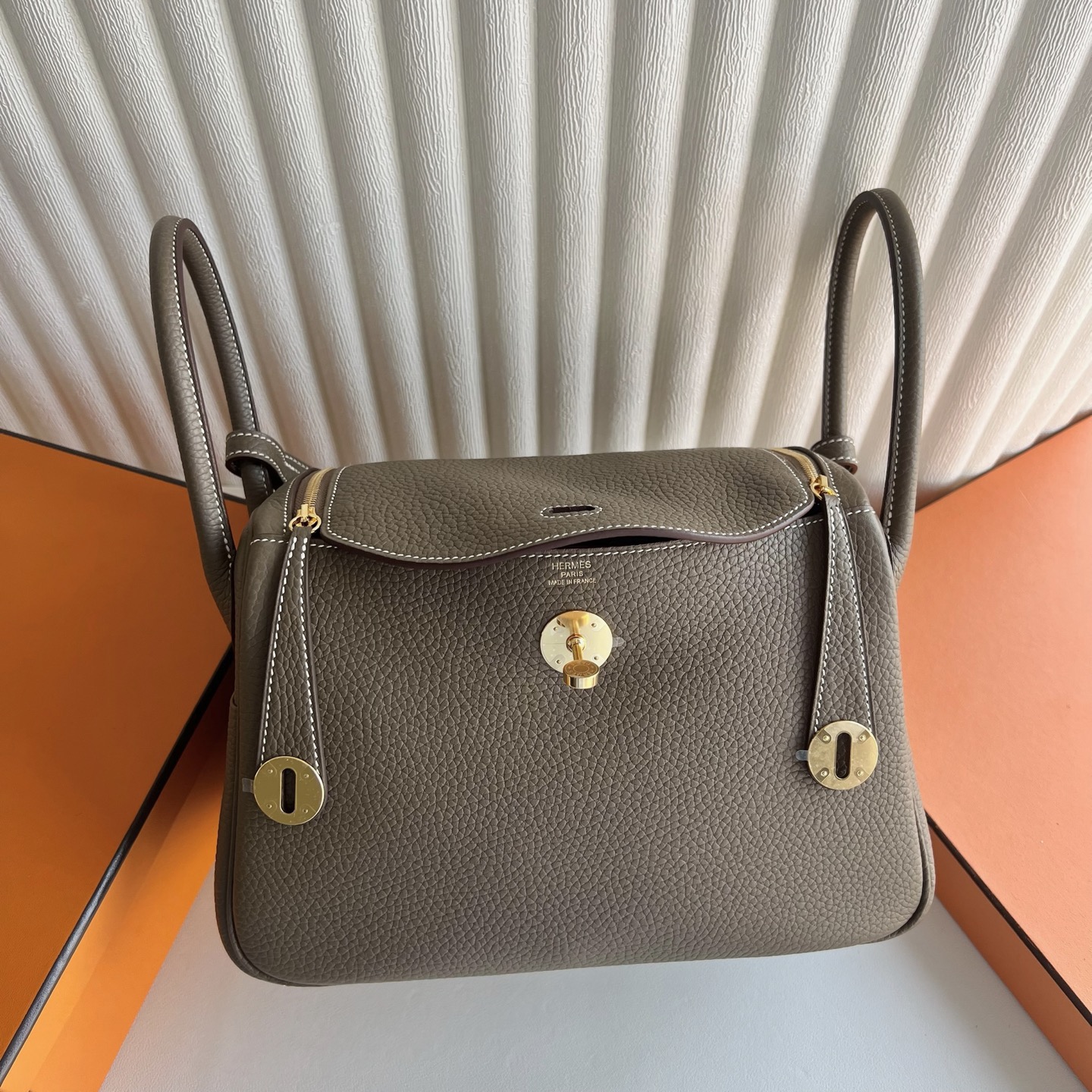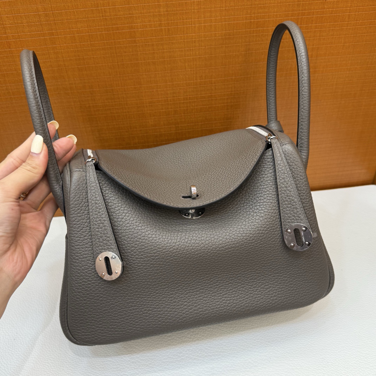 香港中環 愛馬仕 Lindy 26 tc皮 積雨雲灰 金扣 Fully hand-sewn with wax thread