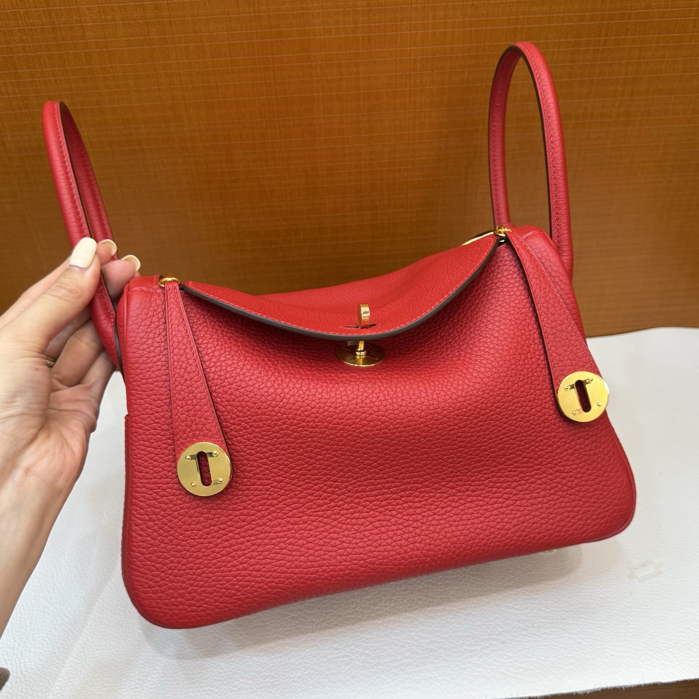 愛馬仕Lindy包尺碼選擇 香港旺角 Hermès Lindy 26 Clemence 國旗紅 金扣